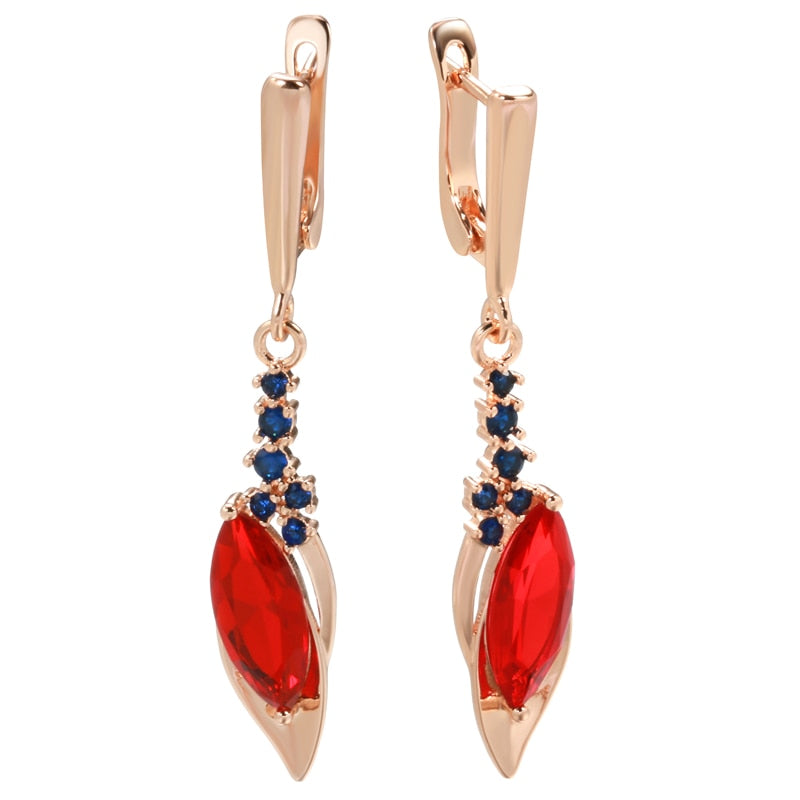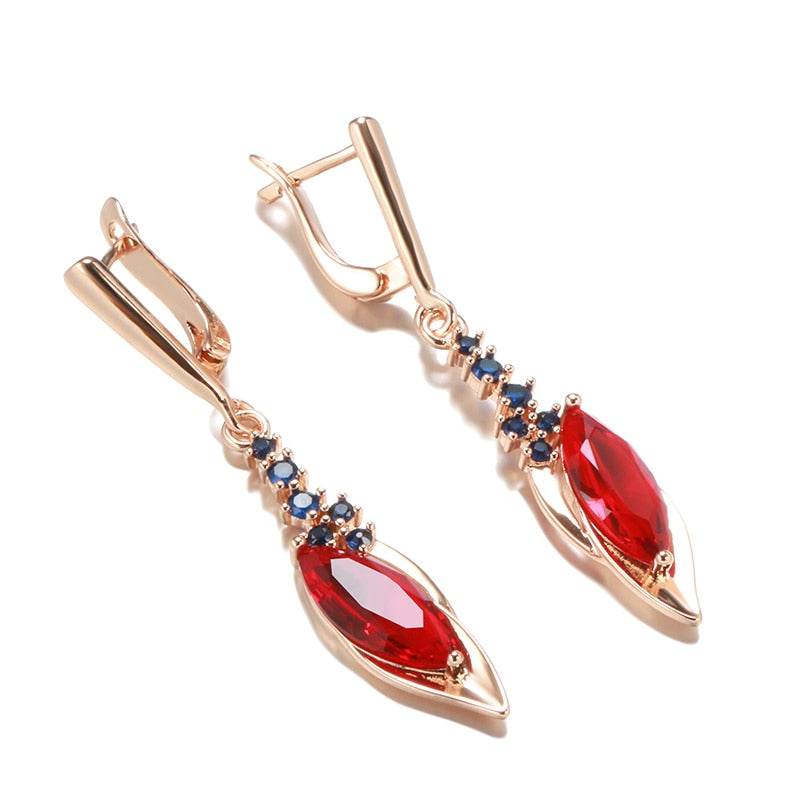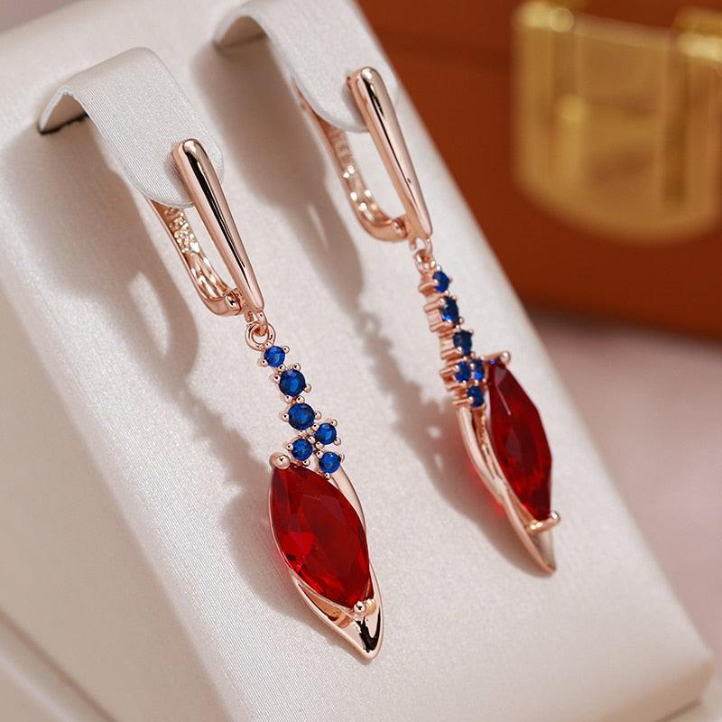 585 Gold Jewelry-Rhombus Shape Red Zircon Long Tassel Pendant Earrings for Women 585 Gold Color Fashion Jewelry Personality Accessories