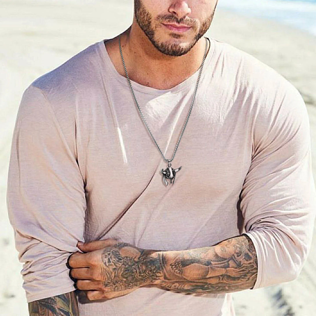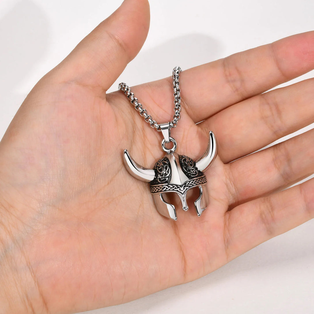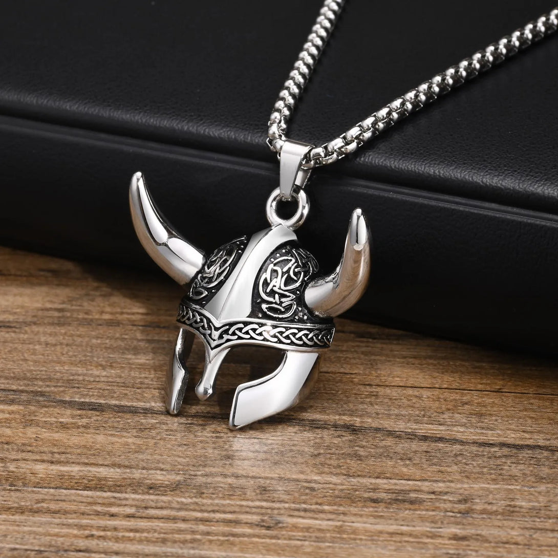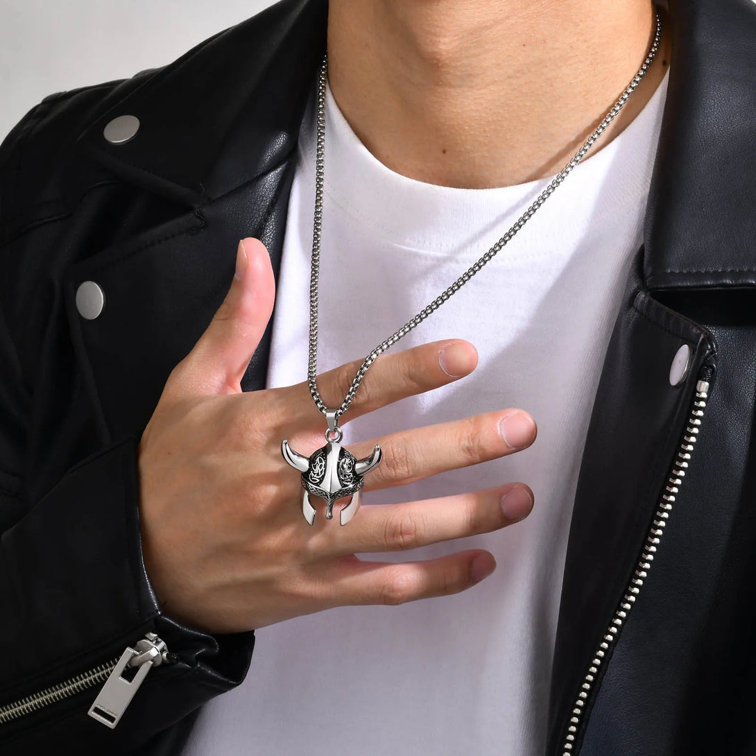 Rock Punk Headwear Style Necklaces for Men,Waterproof Stainless Steel Metal Solid Warrior Helmet With Horns Pendant Collar Gift