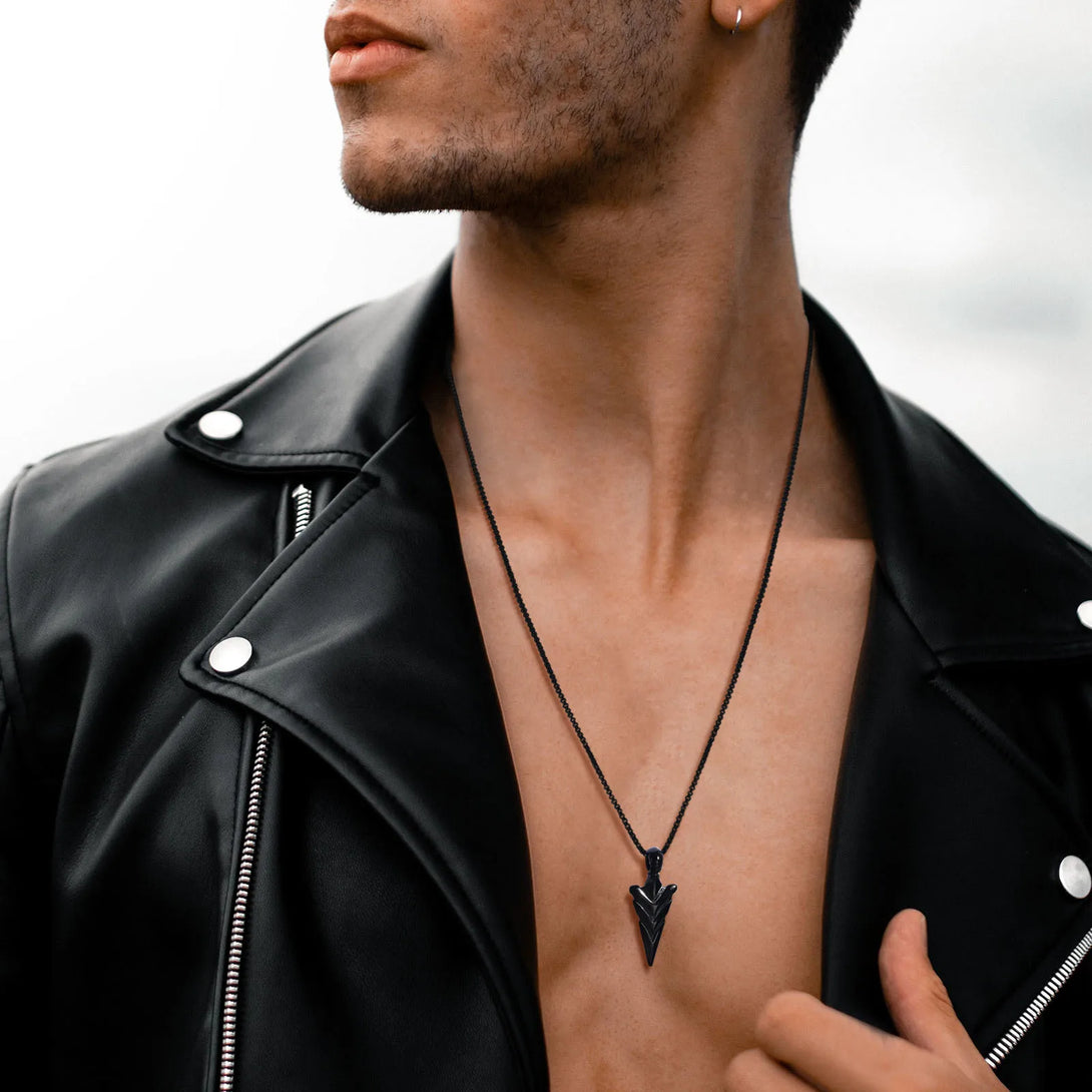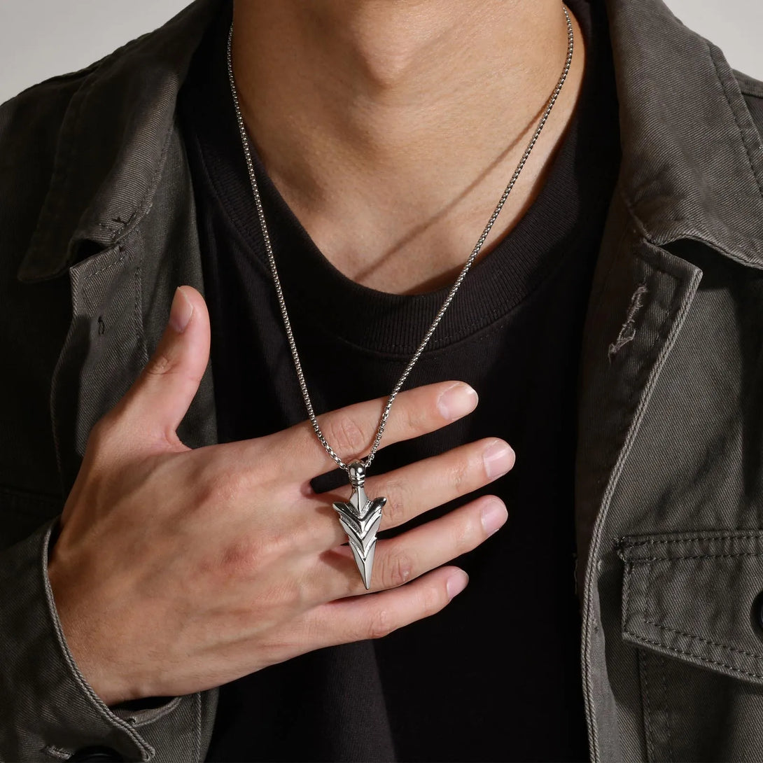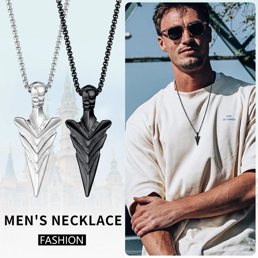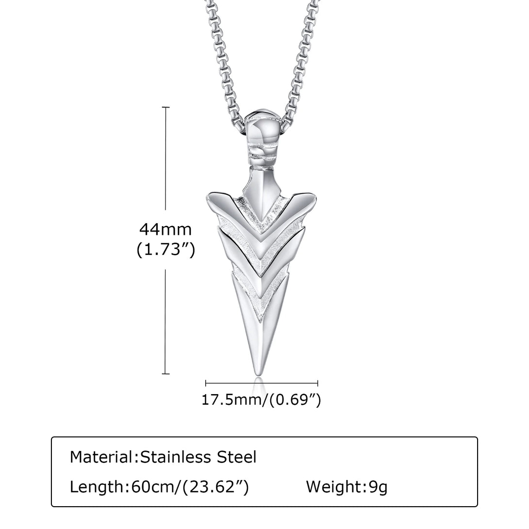 Rock Punk Men's Arrow Head Necklaces, Waterproof Stainless Steel Spear Head Pendant