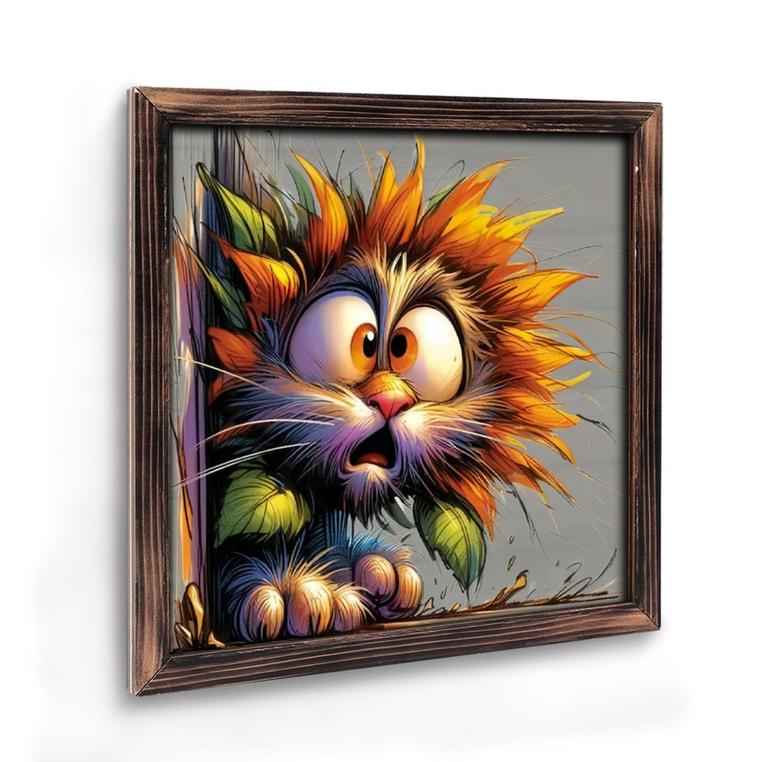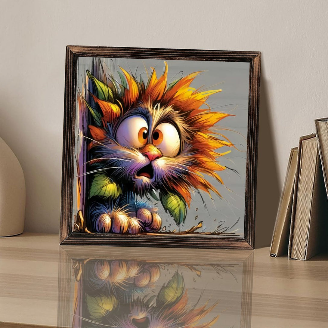 Room Decor Photo Frame Art Prints: Wild Cat Glass Wall Clock, Funny Cartoon Kitten Decor Wall Clock for Homes, Bars, Offices, Man Caves, Garages, And Living Rooms. for Gift Home Wall Decor.08×08inch