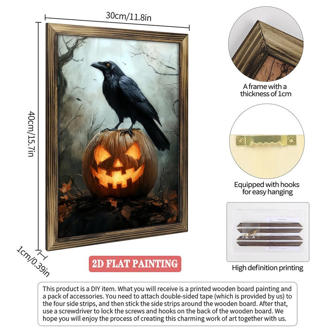 ,Gothic Raven Wood Art Prints, Moody Halloween Crow Wall Art Decor.for Living Room, Kitchen, Bedroom And Office.for Gift Home Wall Decor.