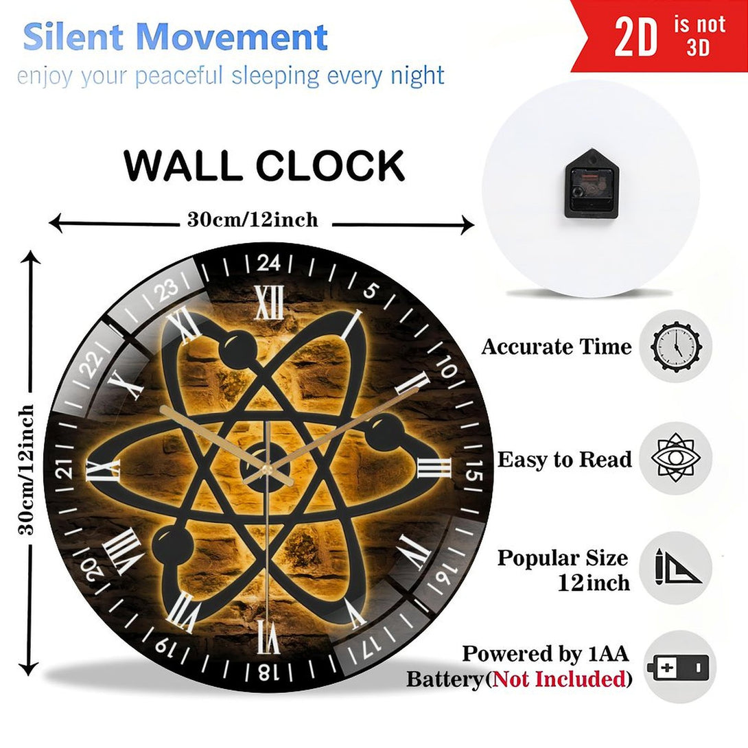 Decor Wall Clock: Atom Physics Glass Wall Clocks,physics Teacher Glass Wall Clocks, Home Decor Science Teacher Decoration Physicists Housewarming Teacher Birthday Style 12×12inch(30×30cm)