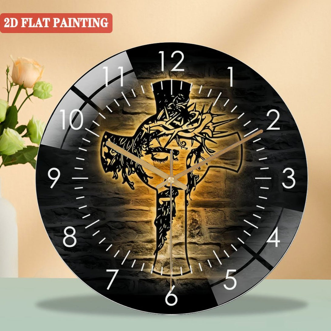 1-8 Christ Jesus Cross Glass Wall Clocks, Jesus Christian Cross Glass Wall Clocks,Home Decor God Faith Decoration Religious Lord Housewarming Birthday