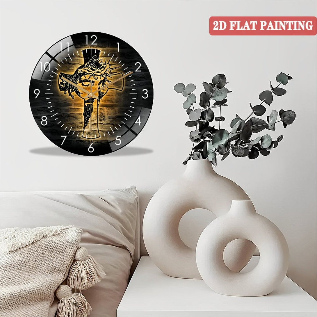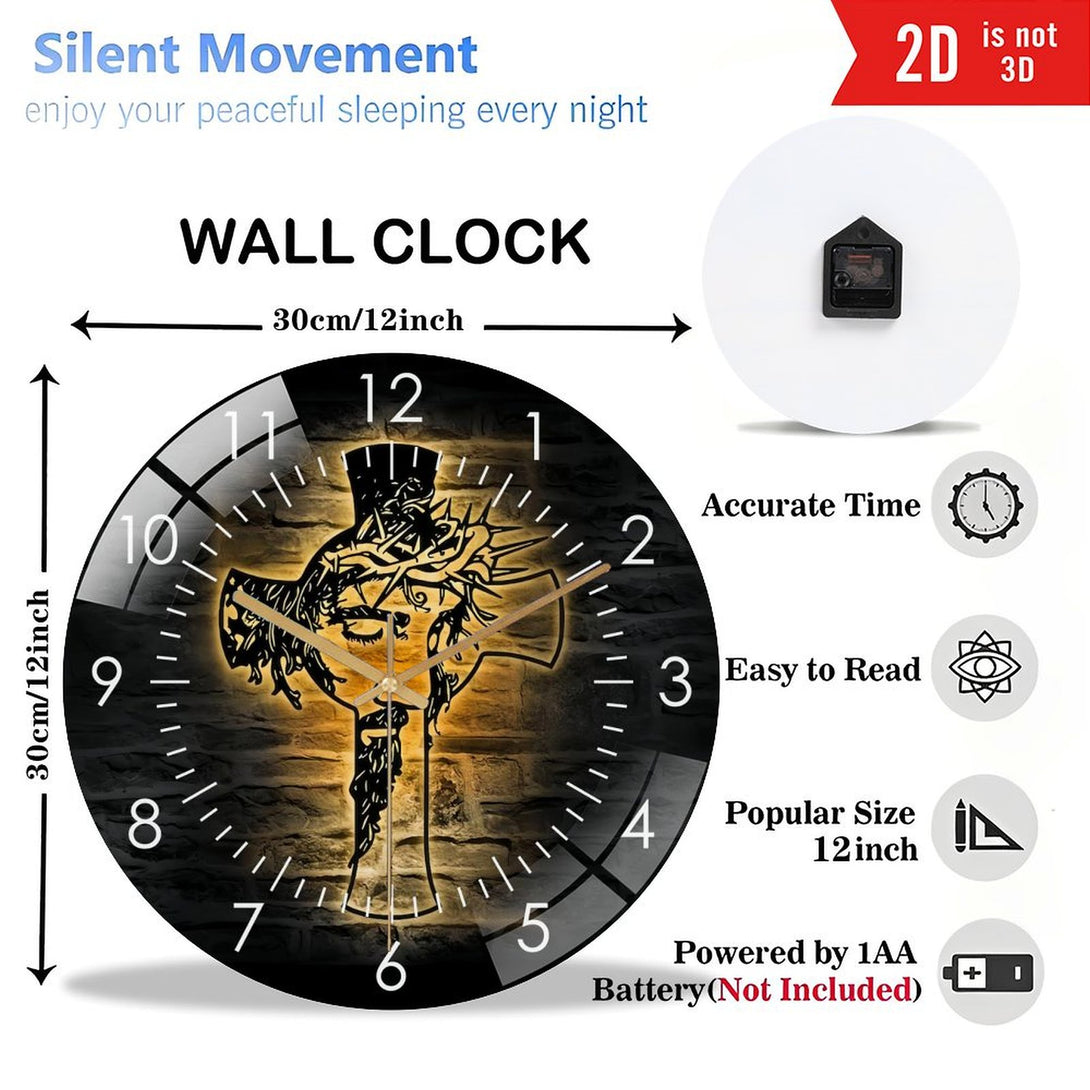 Decor Wall Clock:Christ Jesus Cross Glass Wall Clocks, Jesus Christian Cross Glass Wall Clocks,Home Decor God Faith Decoration Religious Lord Housewarming Birthday Style 12×12inch(30×30cm)