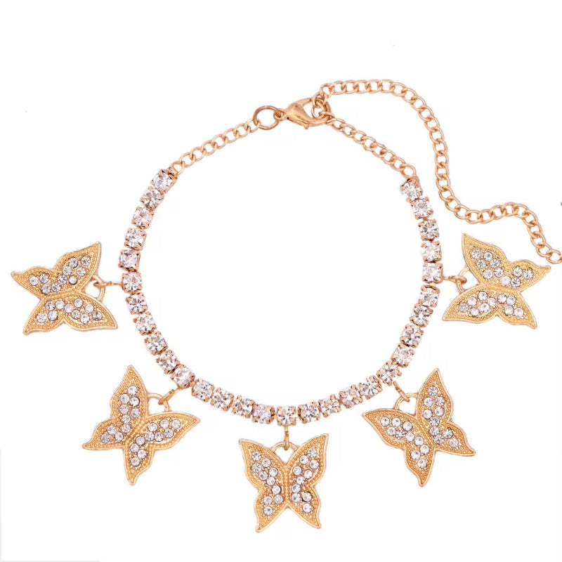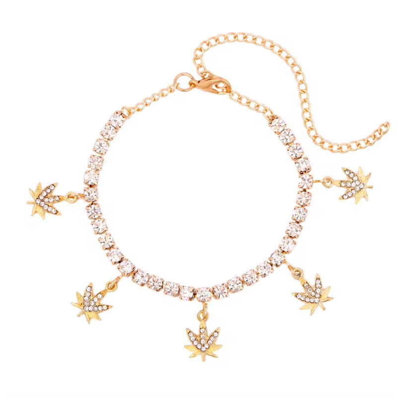 Anklets- Shining Crystal Maple Leaf Anklets for Women Gold Silver Color Full Rhinestone Tennis Chain Ankle Bracelet Jewelry Gift
