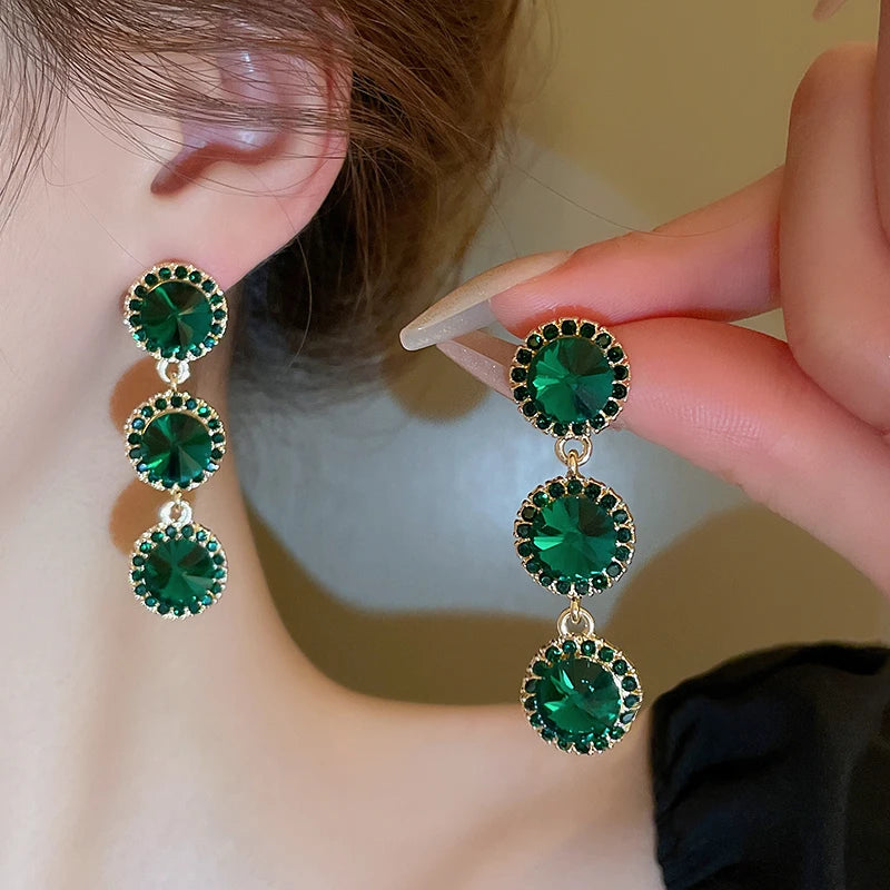 Shiny Geometric Round Square Rhinestone Dangle Earrings For Women