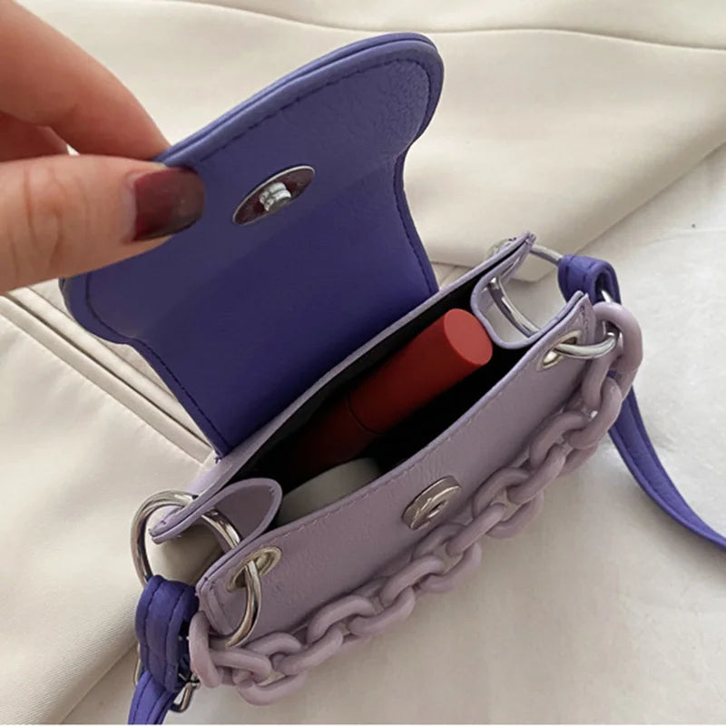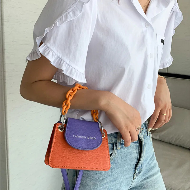 Shoulder Bag for Women with Chain Summer Color Contrast Mini PU Clutches New Popular Trend Crossbody FashionTop-Handle Bags