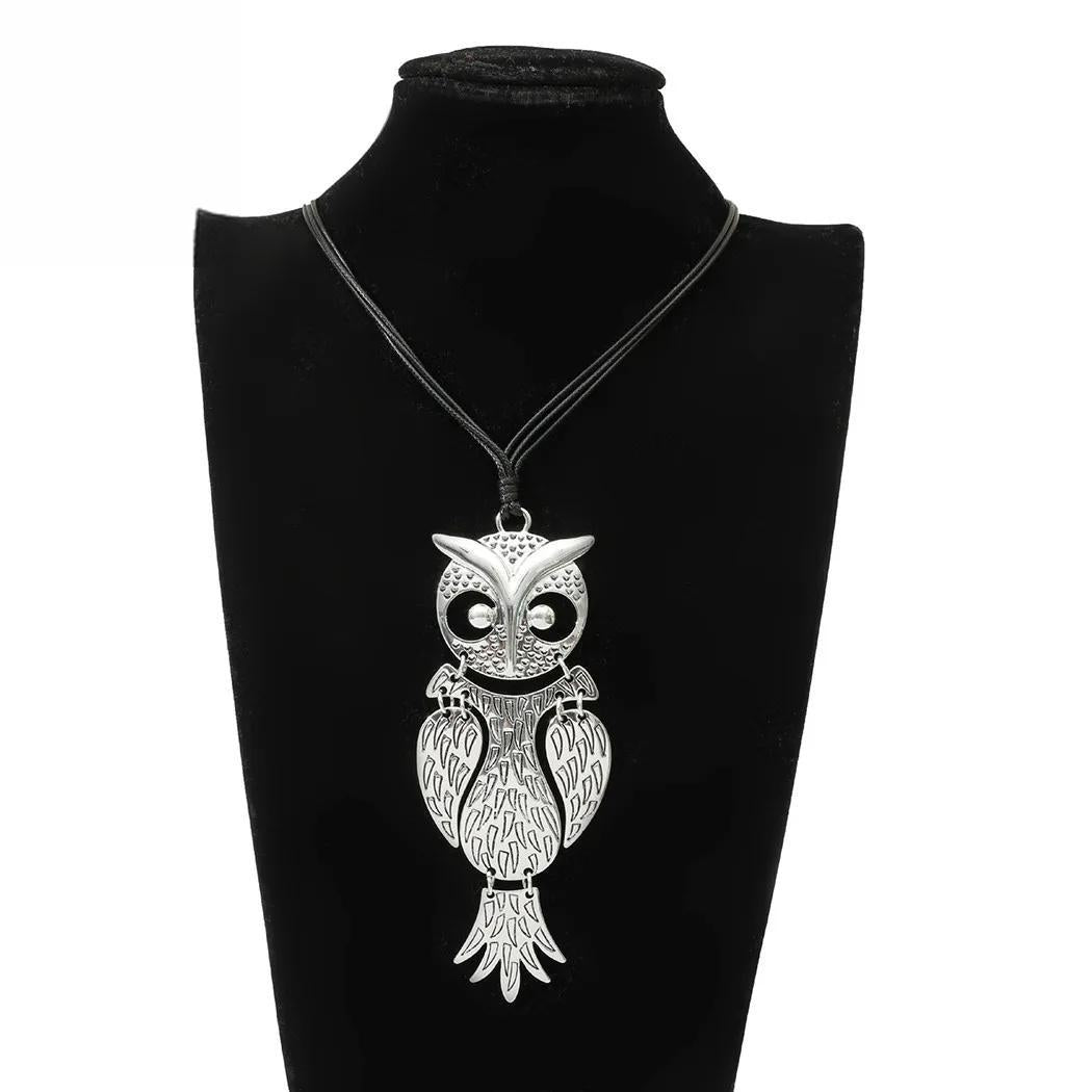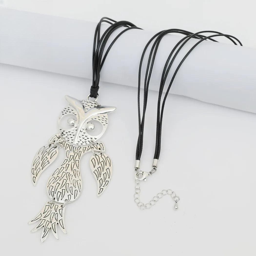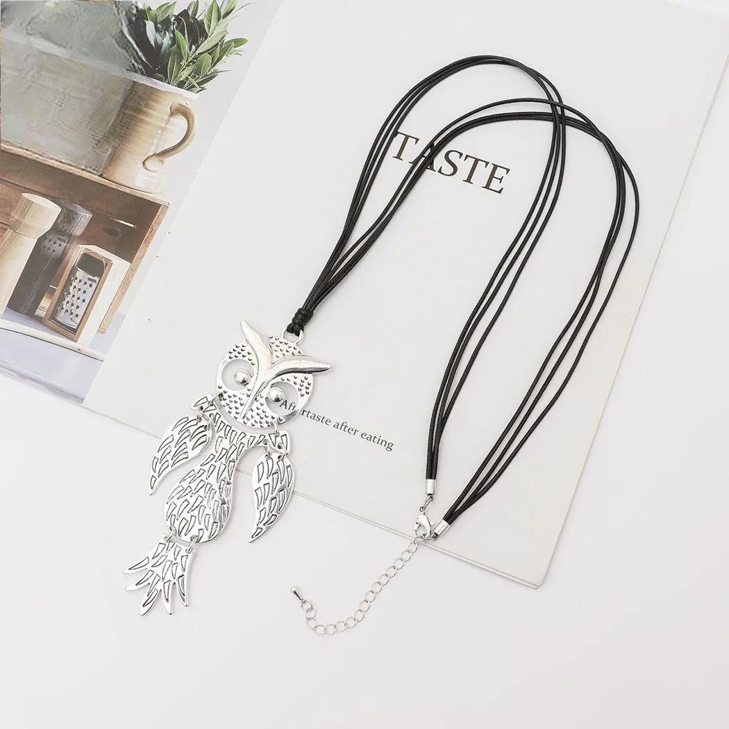 Silver Color Owl Suspension Pendants Long Collares Necklace Chains Accessories for Women