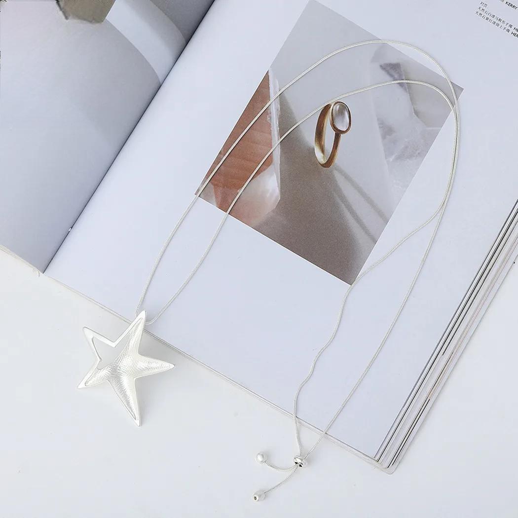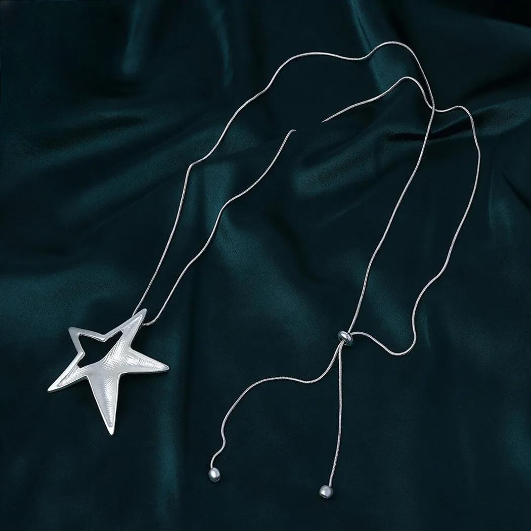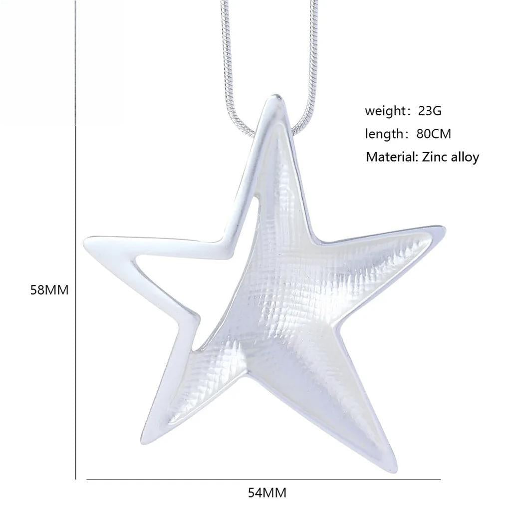 Silver Color Star Necklace Jewellery for Women Suspension Trendy Long Chain Jewelry Pendants