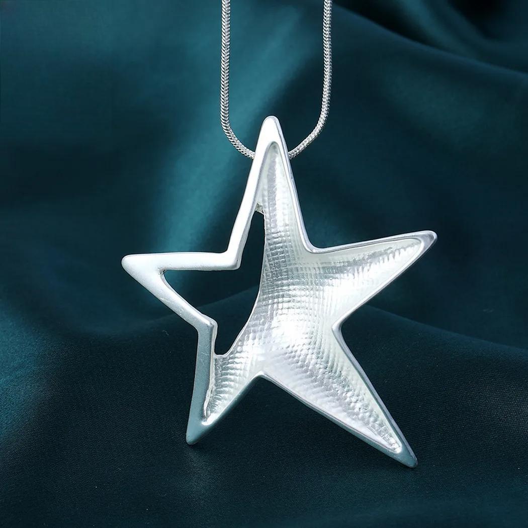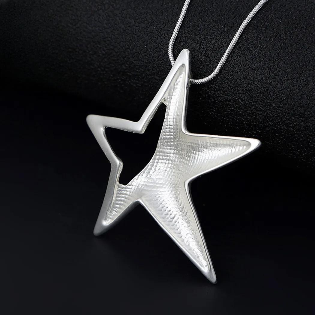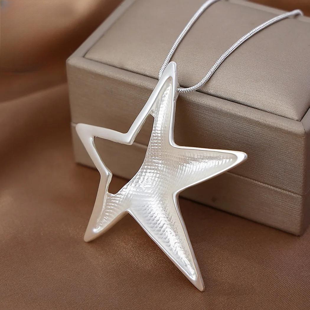 Silver Color Star Necklace Jewellery for Women Suspension Trendy Long Chain Jewelry Pendants