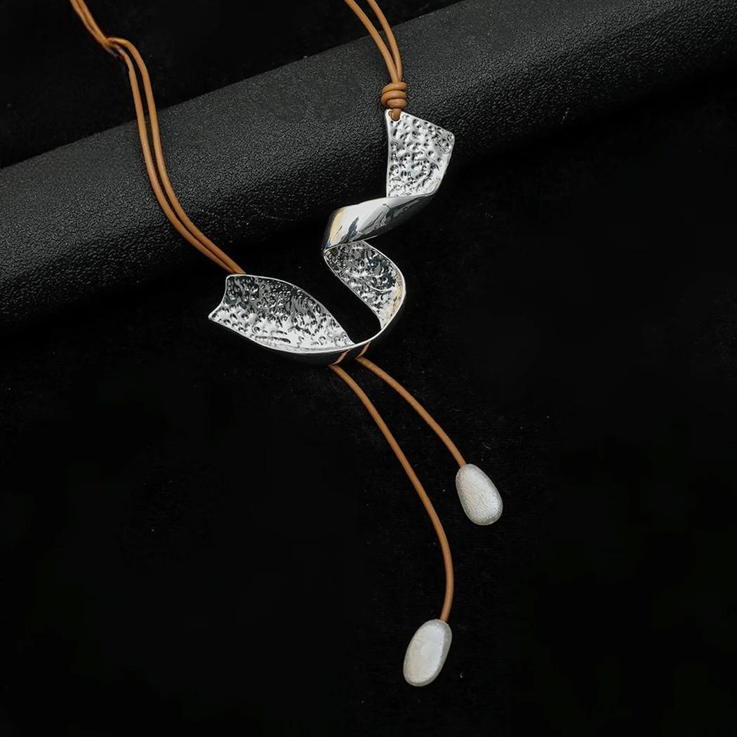 Silver Color Twisted Geometric Long Chains Necklace New in Vintage Accessories Gothic Pendants Korean Fashion Jewelry for Women