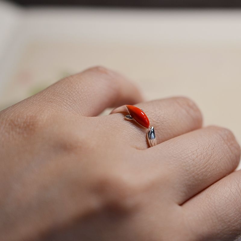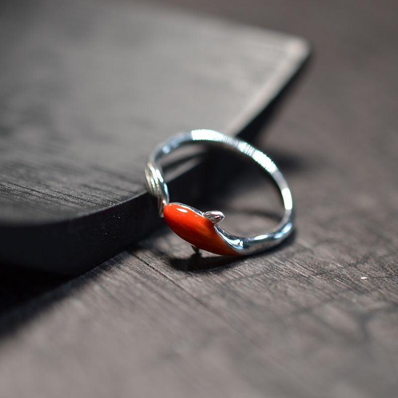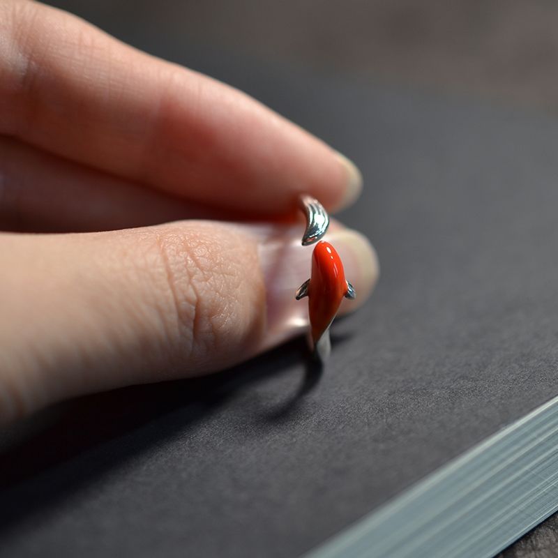 Cocktail Ring-Silver inlaid cloisonne red koi shape opening adjustable ring classical art exquisite luxury ladies jewelry