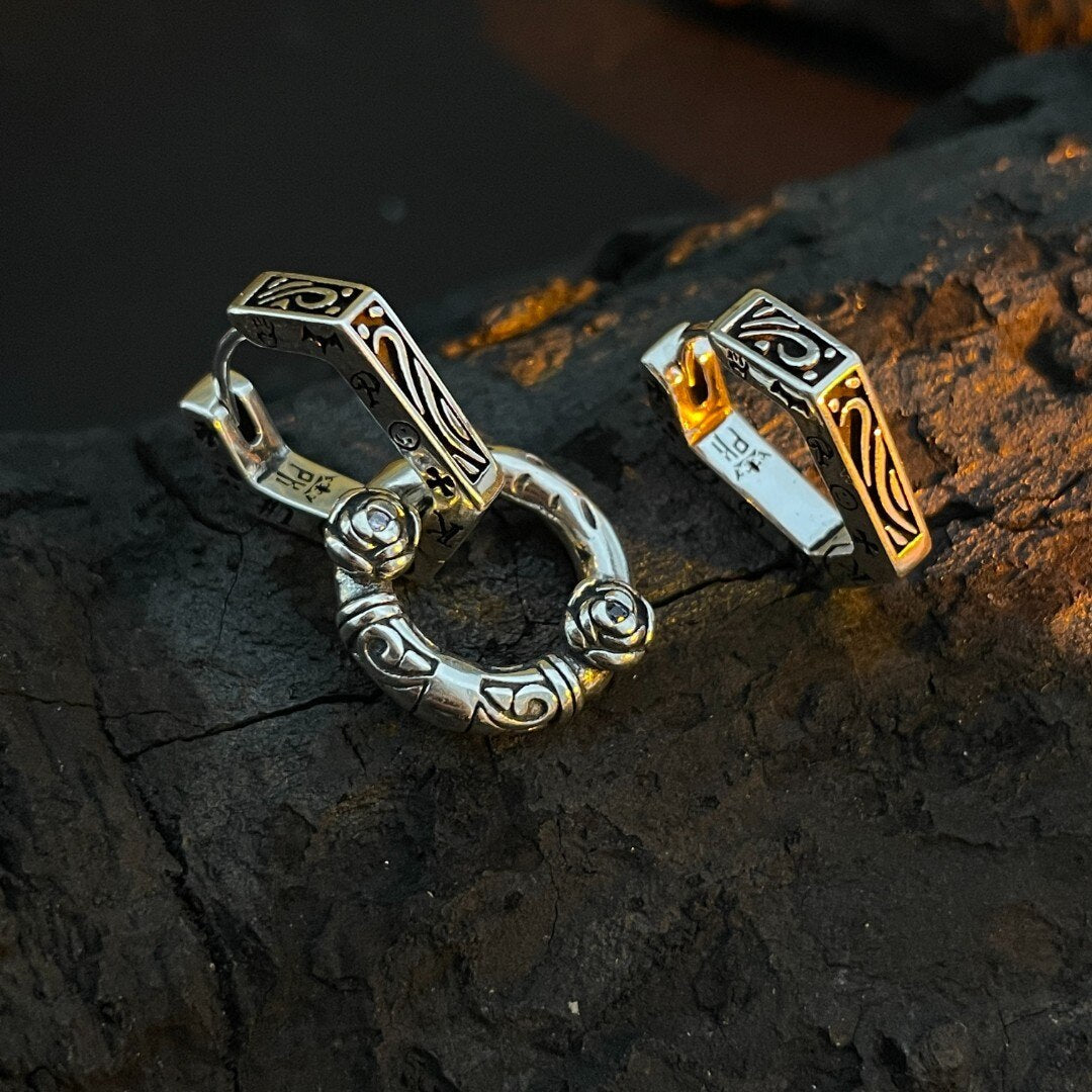 585 Gold Jewelry-Silver - Plated Round Circle Women 925 Stamp Hoop Earrings for Women Thai Silver Color Rose Graffiti Earrings Jewelry Gifts