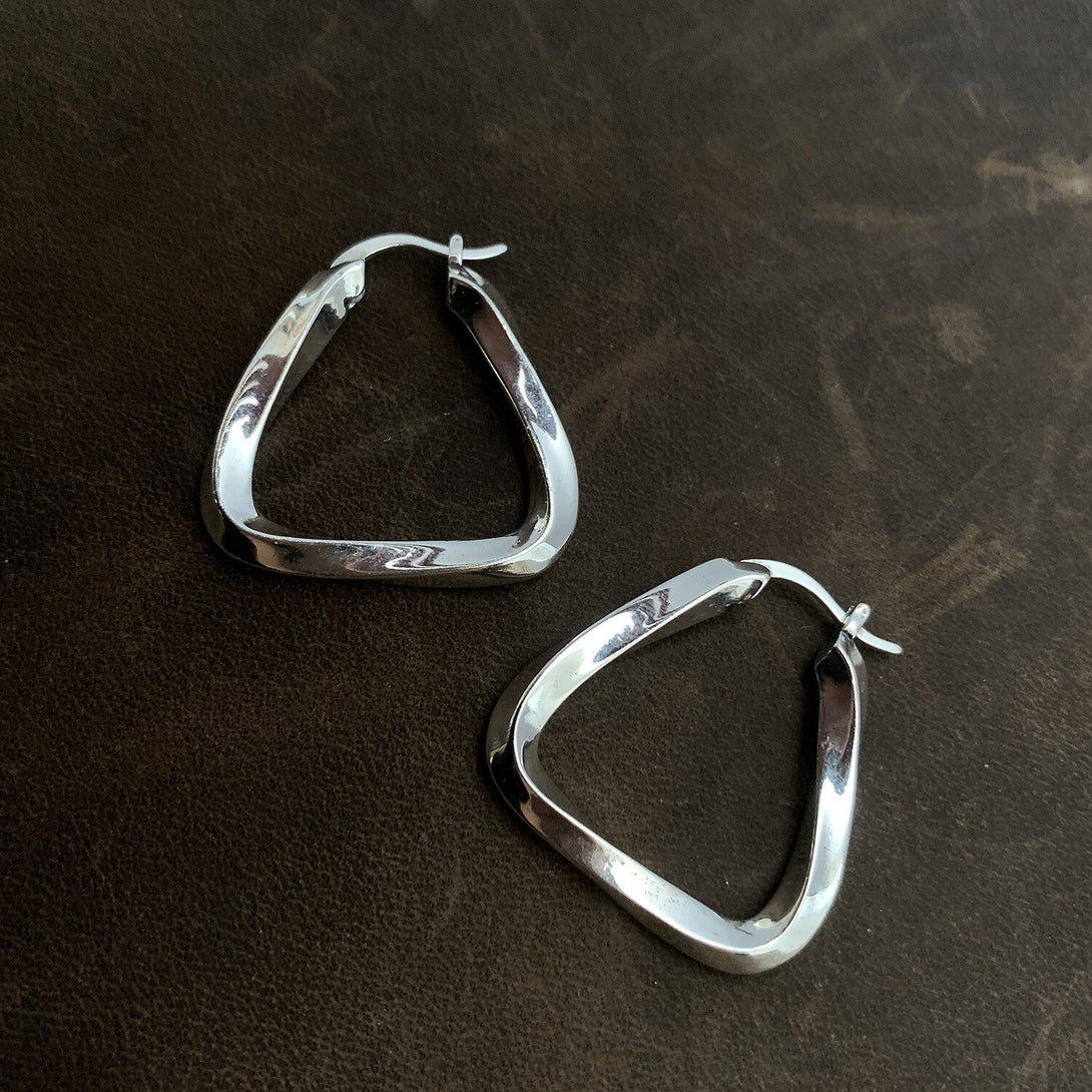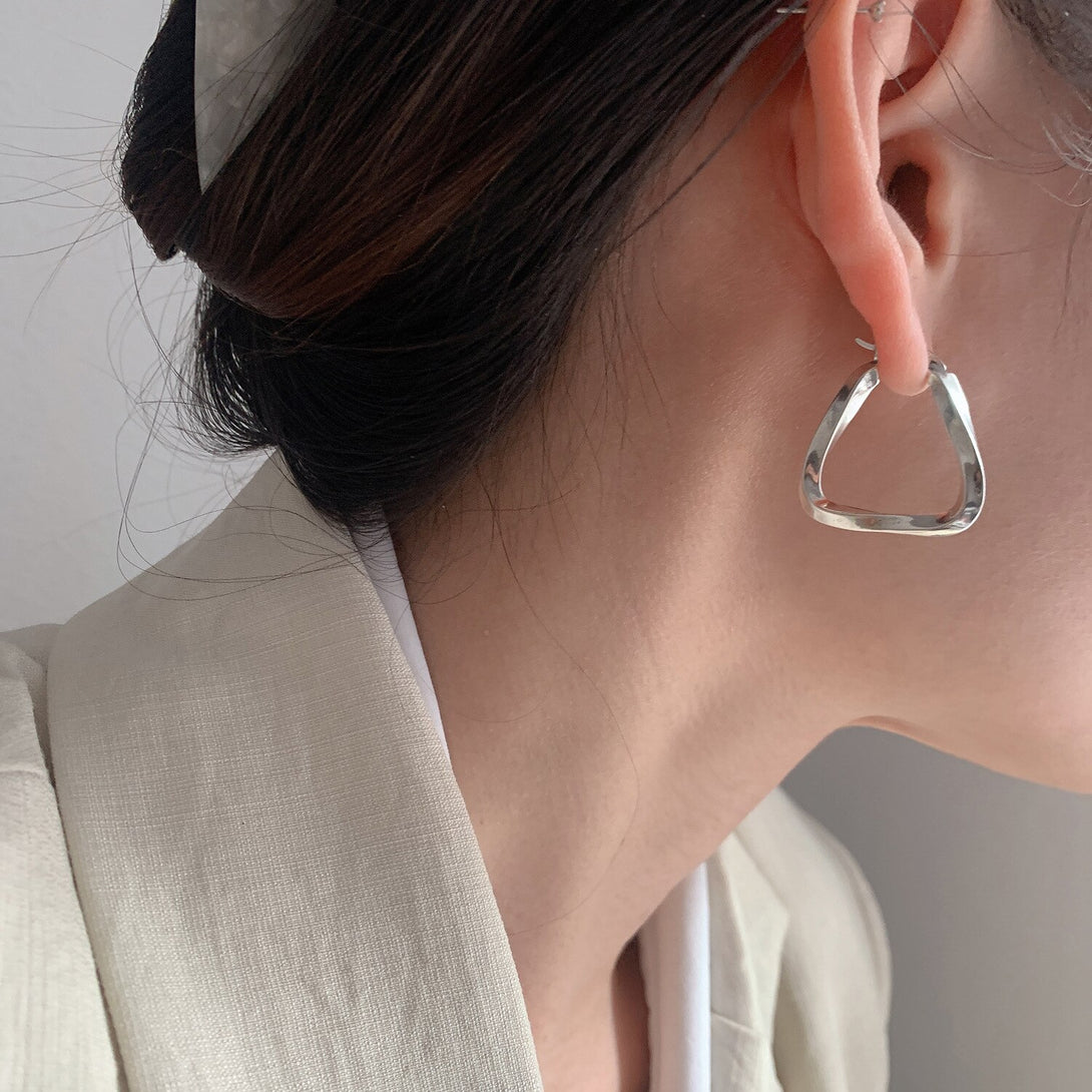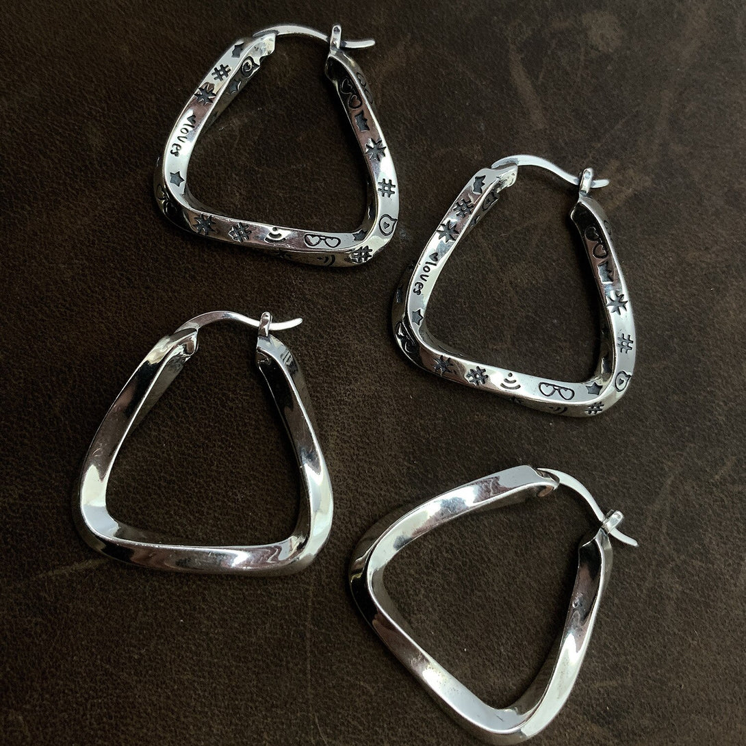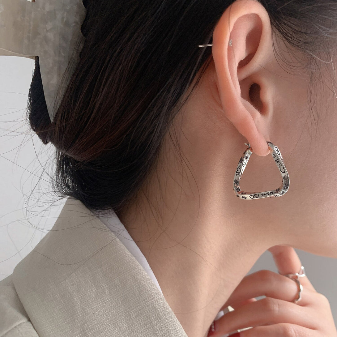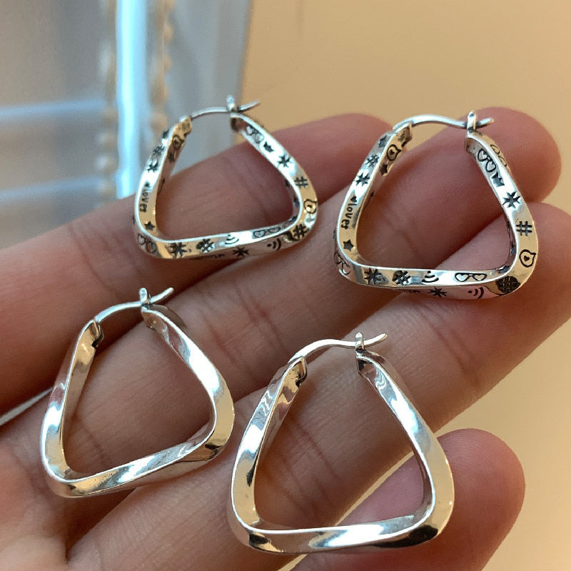 585 Gold Jewelry-Silver - Plated Twisted Graffiti Heart Hoop Earrings For Women Temperament Simple Gentle Accessories Girl Punk Earrings