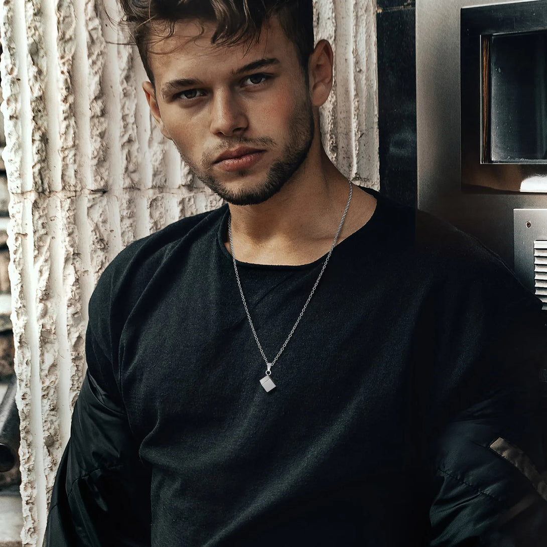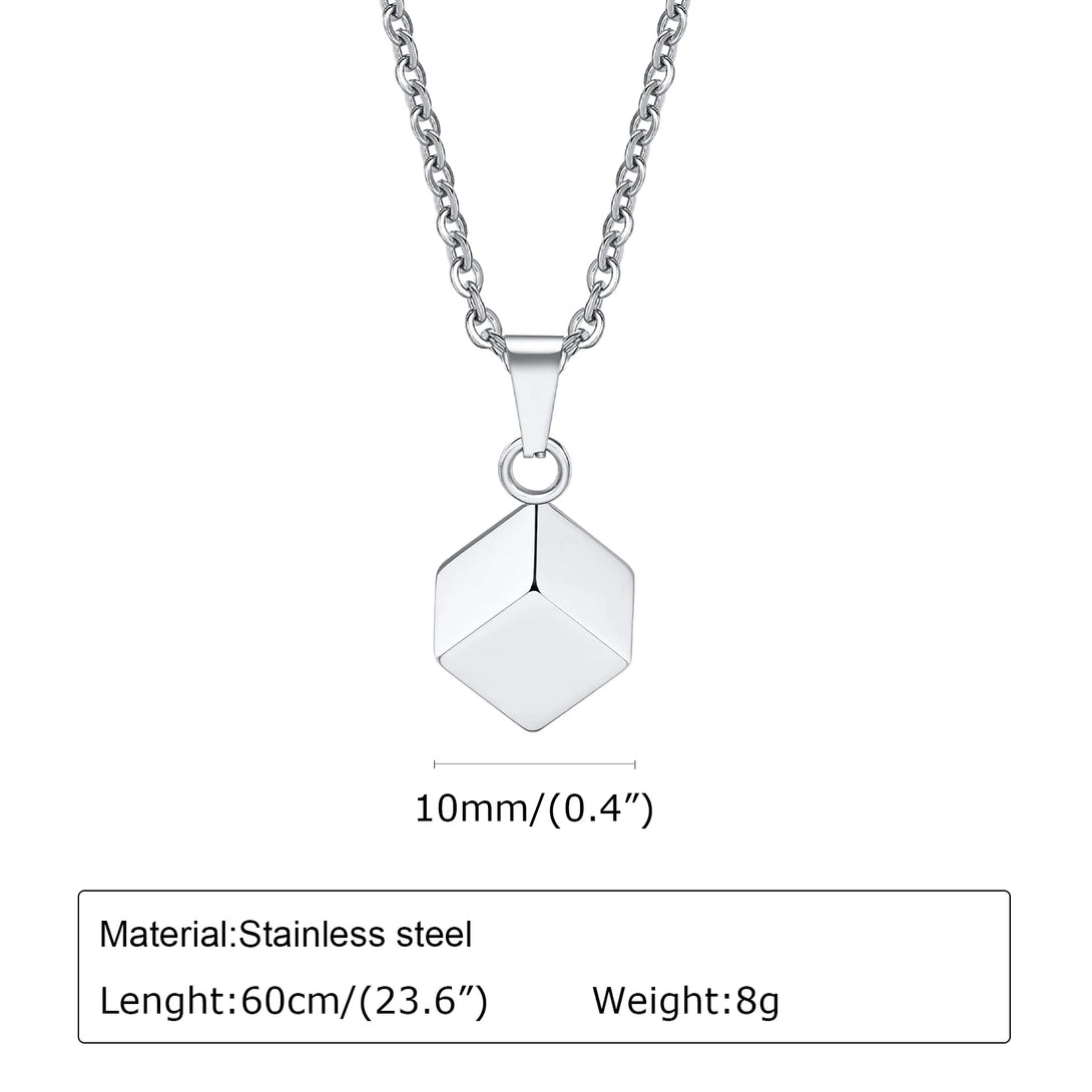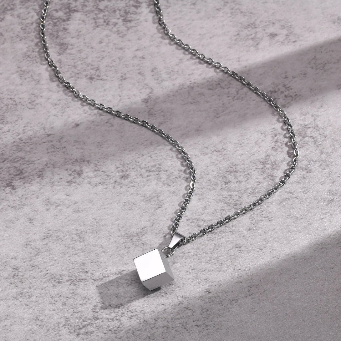 Simple 3D Cube Necklaces for Men Boys,Waterproof Stainless Steel Stylish Geometric Square Pendant Collar Jewelry