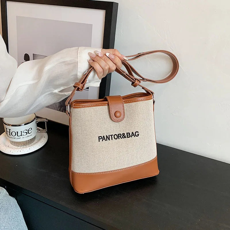 Simple Bucket Single-shoulder Canvas Crossbody Bags Fashion Retro Patchwork Underarm Bag for Women's New Casual Versatile