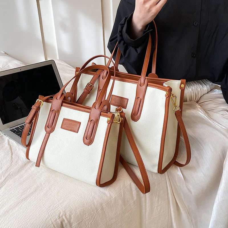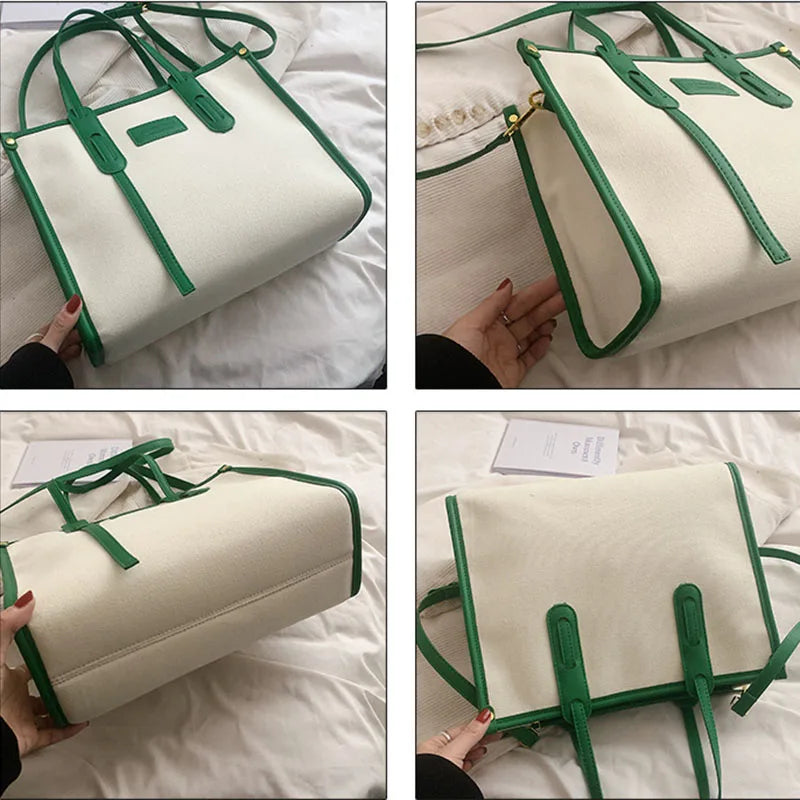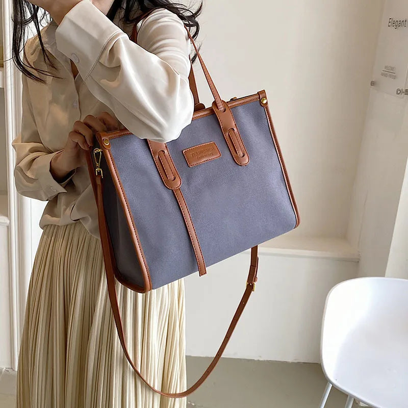 Simple Commuting Tote Bag Contrast Handbag Large Capacity Canvas Single-shoulder Messenger Bags Women's New Fashion Crossbody