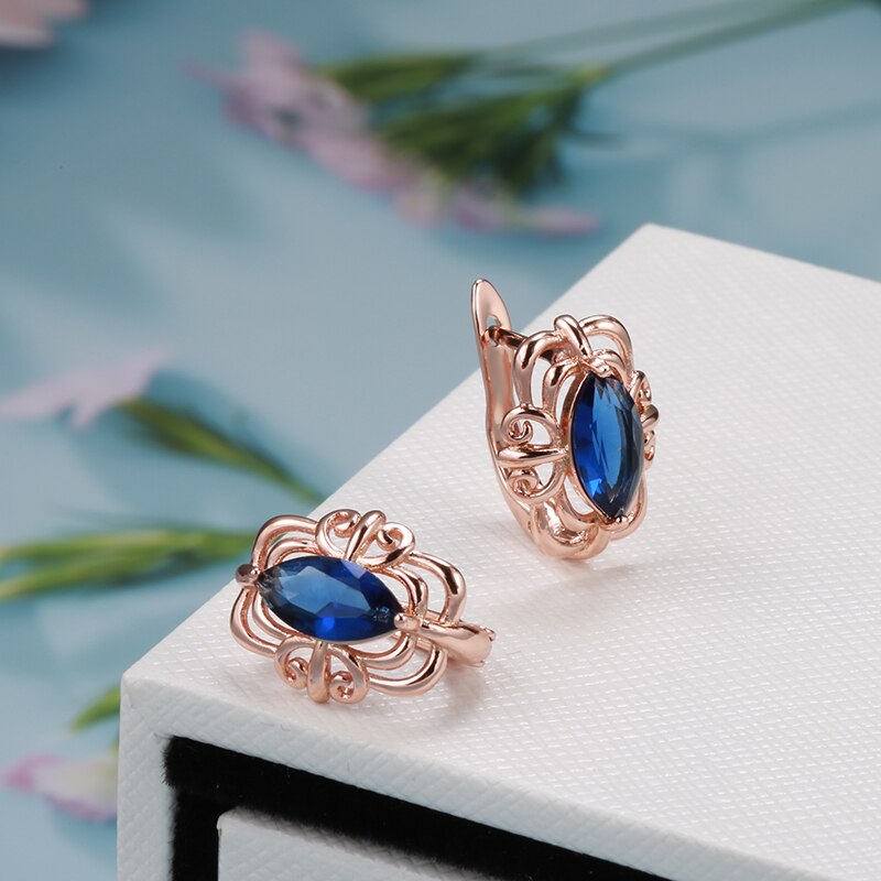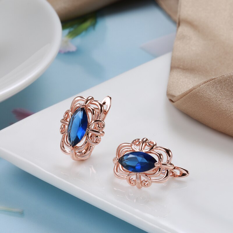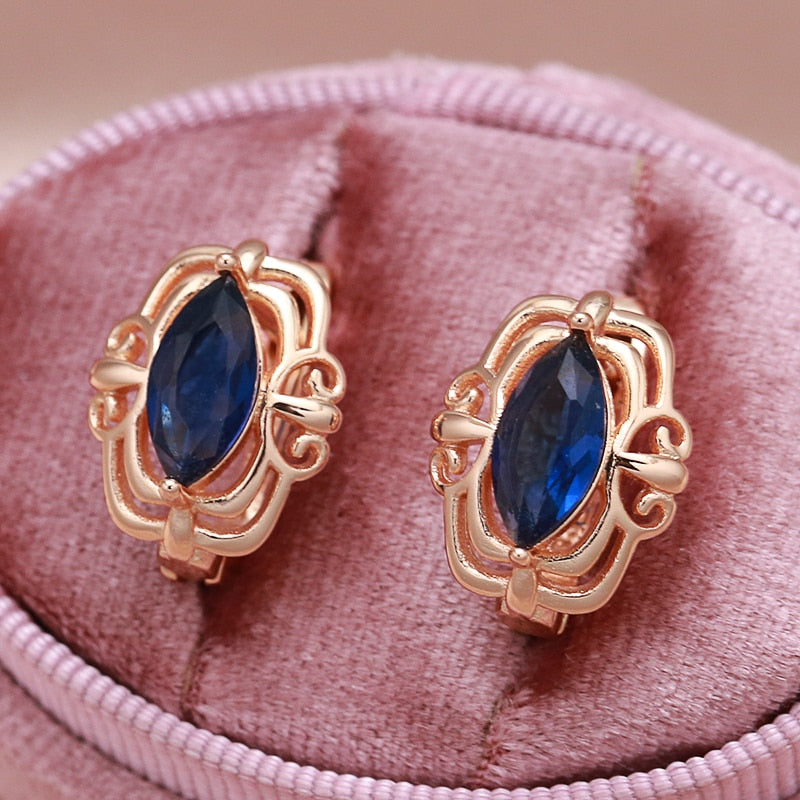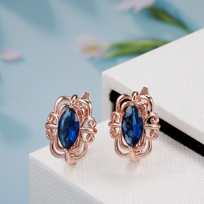 585 Gold Jewelry-Simple Hollow Geometric Cut Artificial Blue Zircon Women's Clip Earrings New Gothic Jewelry Travel Retro Earrings for Women