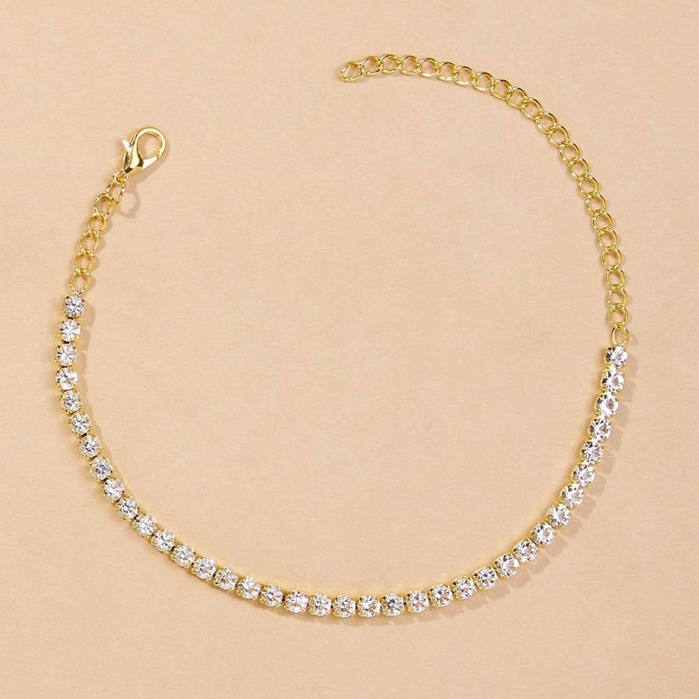 Anklets- Stonefans Simple Rhinestone Tennis Chain Anklet Foot for Women Summer Accessories Ins Fashion Leg Chain Ankle Bracelet Jewelry