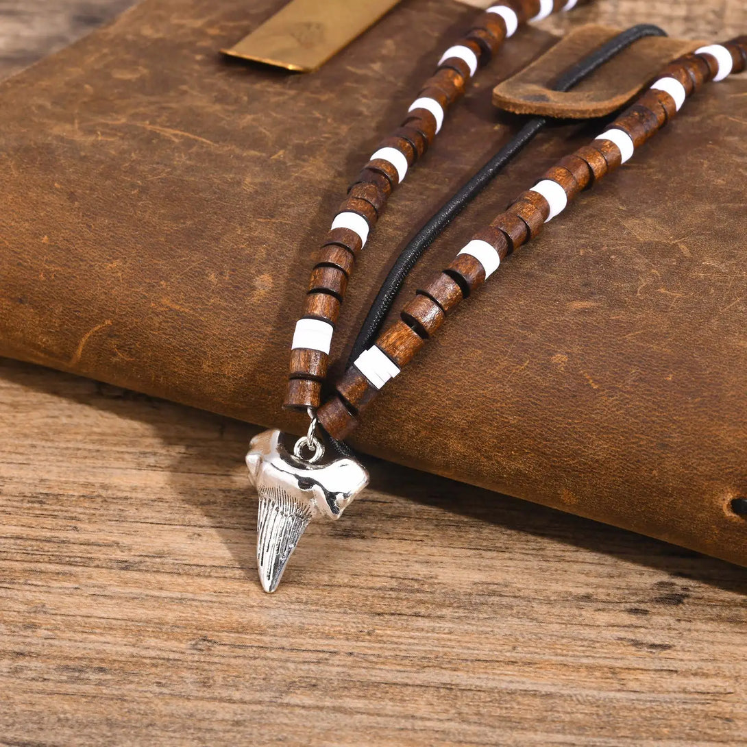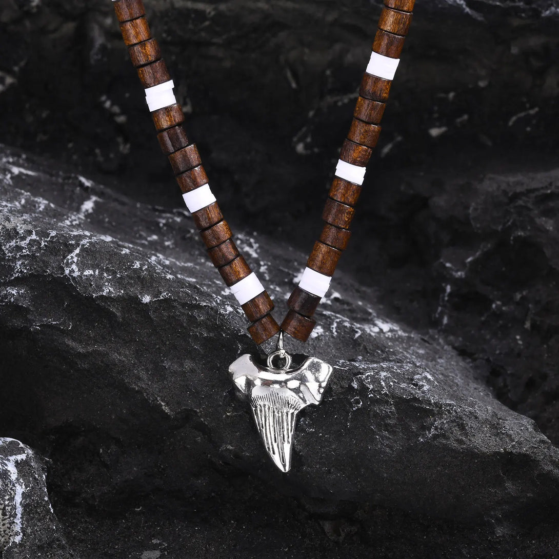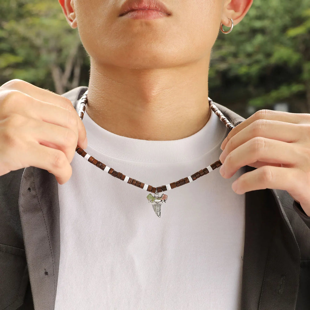 Simple Shark Teeth Pendant Necklace for Men Boys,Natural Coconut Shell Soft Clay Wood Beaded Choker,Animal Jewelry