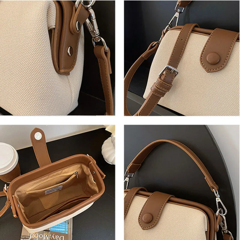 Simple Single Shoulder Crossbody Bag New Trend Fashion Portable Shell Handbag Women Canvas Contrast Commuter Satchel Versatile