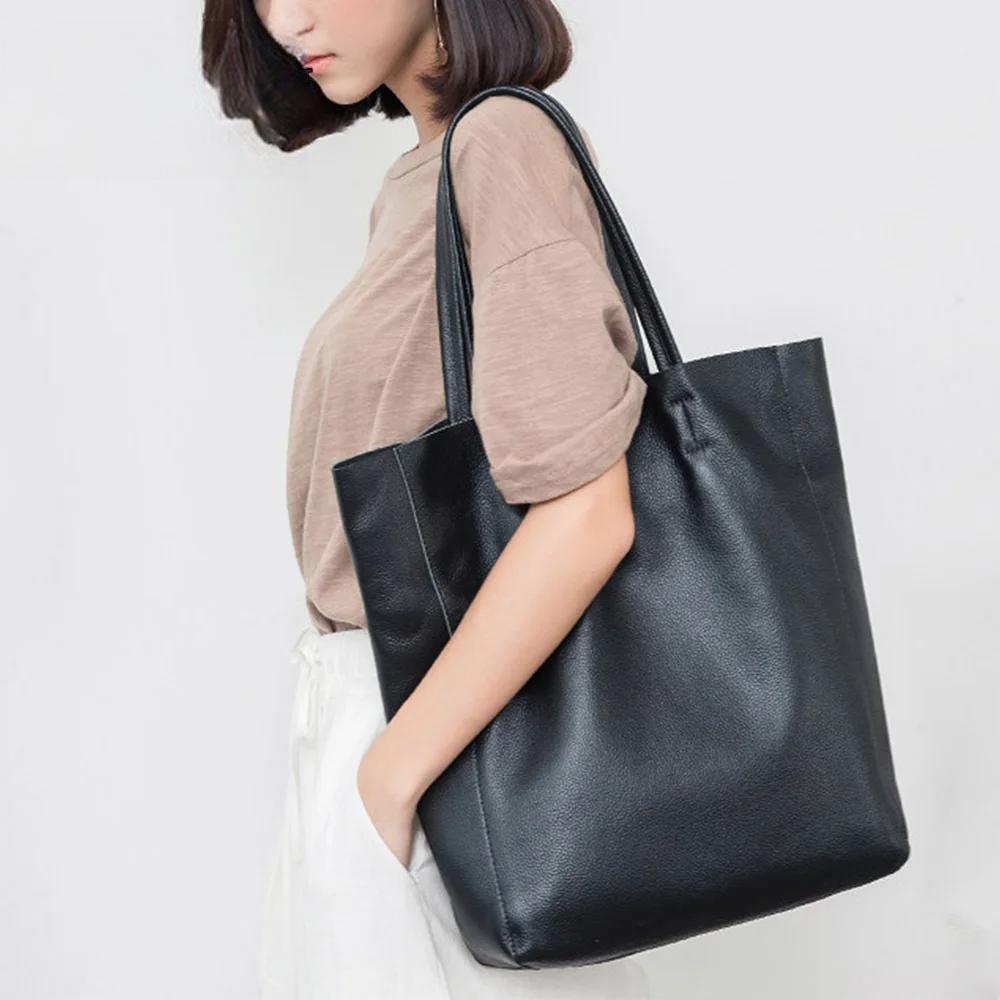 Simple Style Genuine Leather Women Tote Bag High Quality Cowhide Large Shopper Bag Female Totes Calfskin Shoulder Bag New