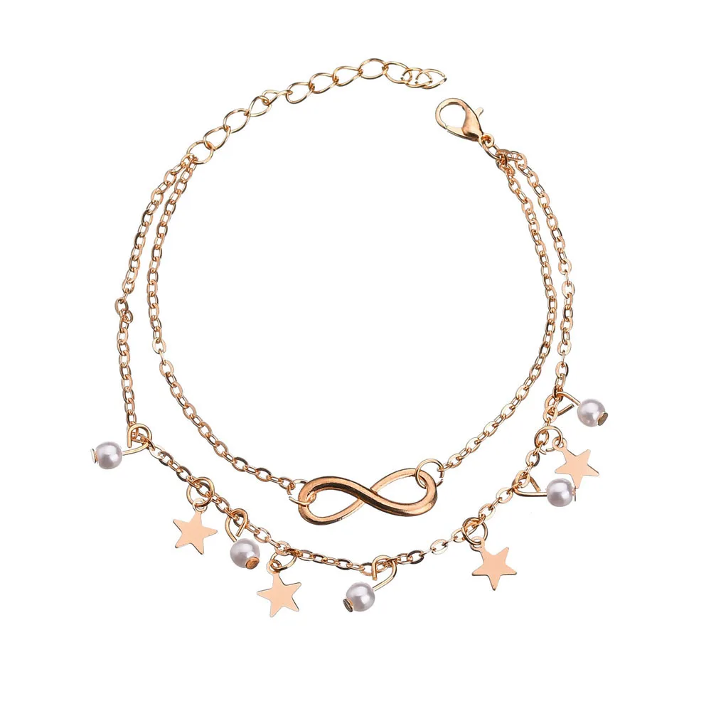 Anklets- Simple Tassel Double Star Pearl 8 Word Female Anklet Barefoot Crochet Sandals Foot Jewelry New Ankle Bracelet Female Leg Chain