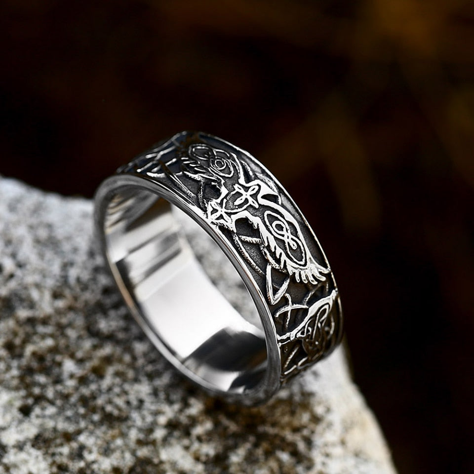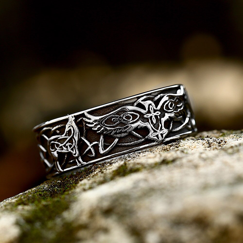 Name: Simple Vintage Stainless Steel Viking Celtic Knot Rings Punk Fashion Nordic Wolf Ring For Men Women Amulet Jewelry