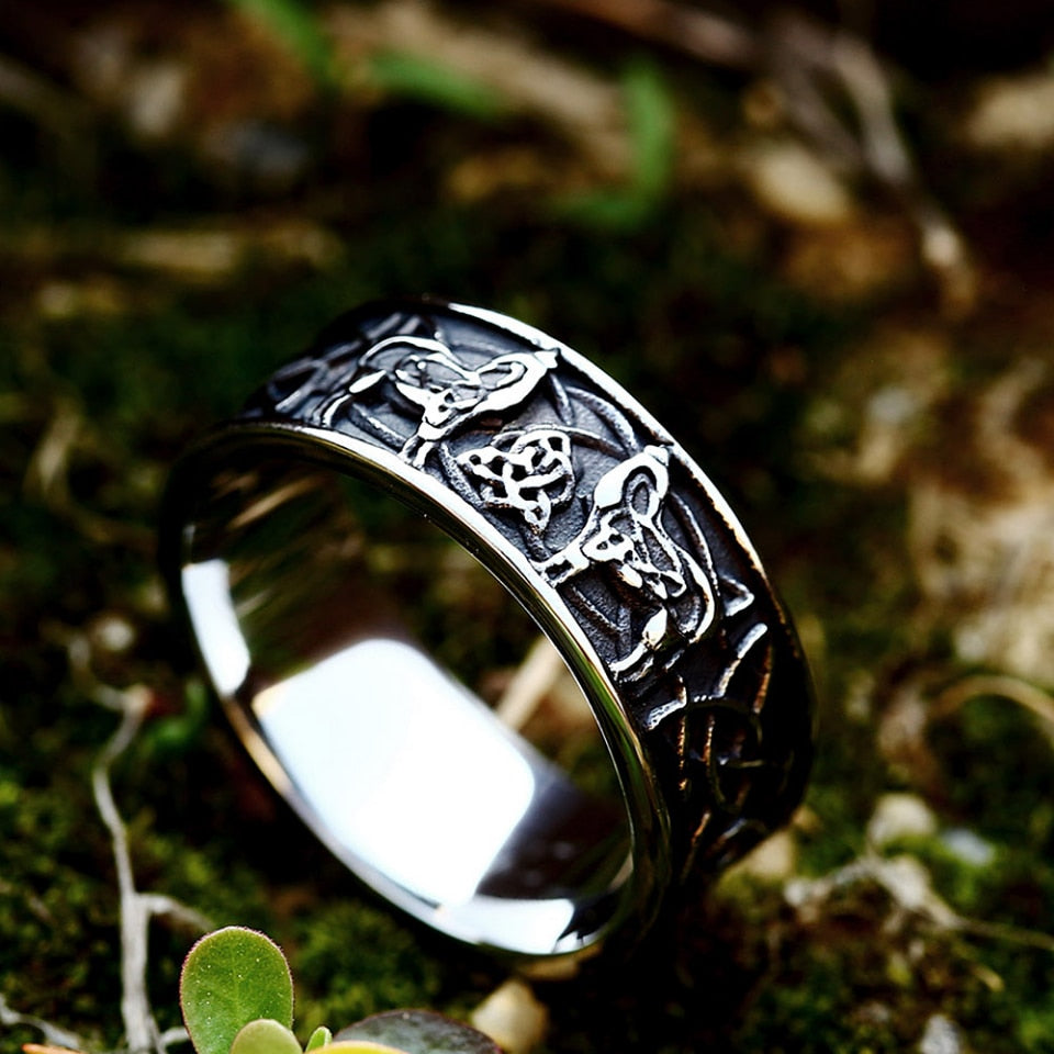 Simple Vintage Stainless Steel Viking Celtic Knot Rings Punk Fashion Nordic Wolf Ring