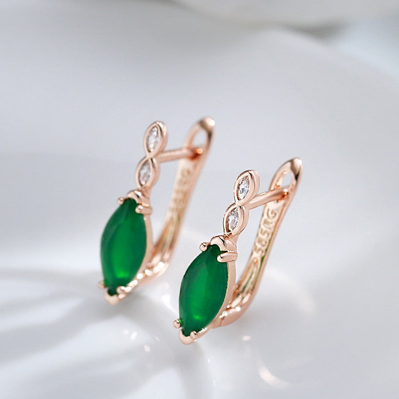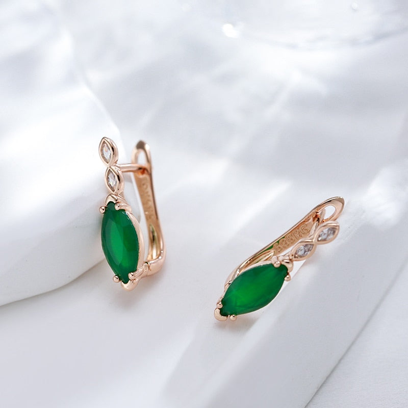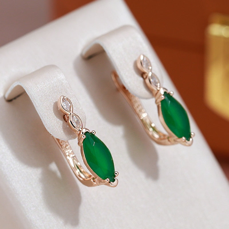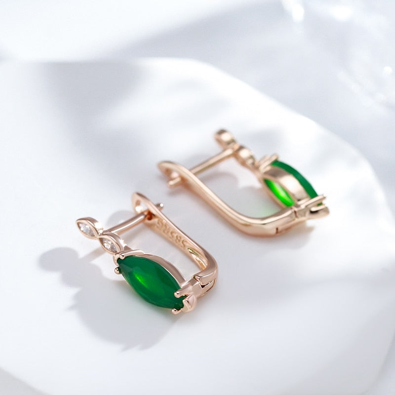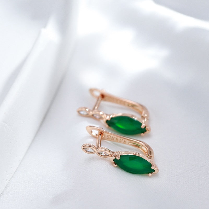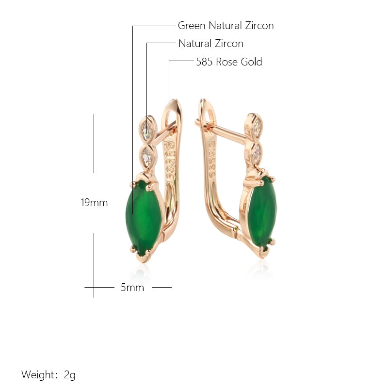 585 Gold Jewelry- Single Rhombus Emerald Green Zircon 585 Gold Color Earrings Crossing Design Women Wedding Jewelry Ethnic Accessories