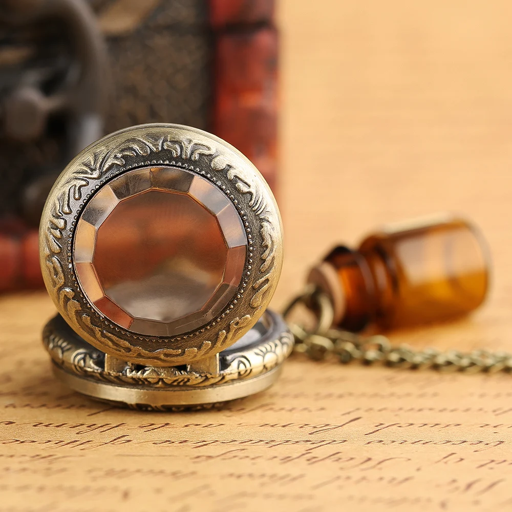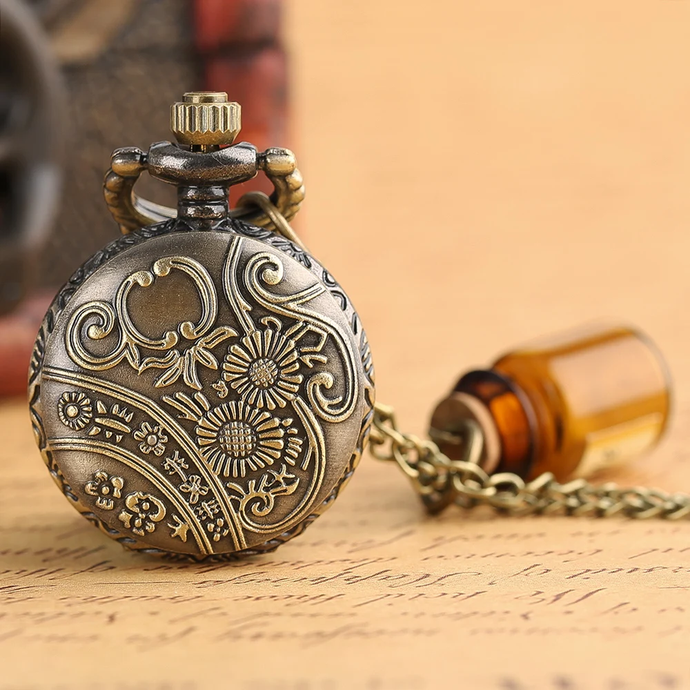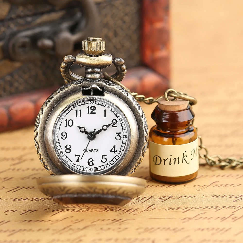 Pocket & Fob Watches--Small Pocket Watch Alice in Wonderland Drink Me Necklace Pendant with Bottle Birthday Gifts for Women Girl Watches