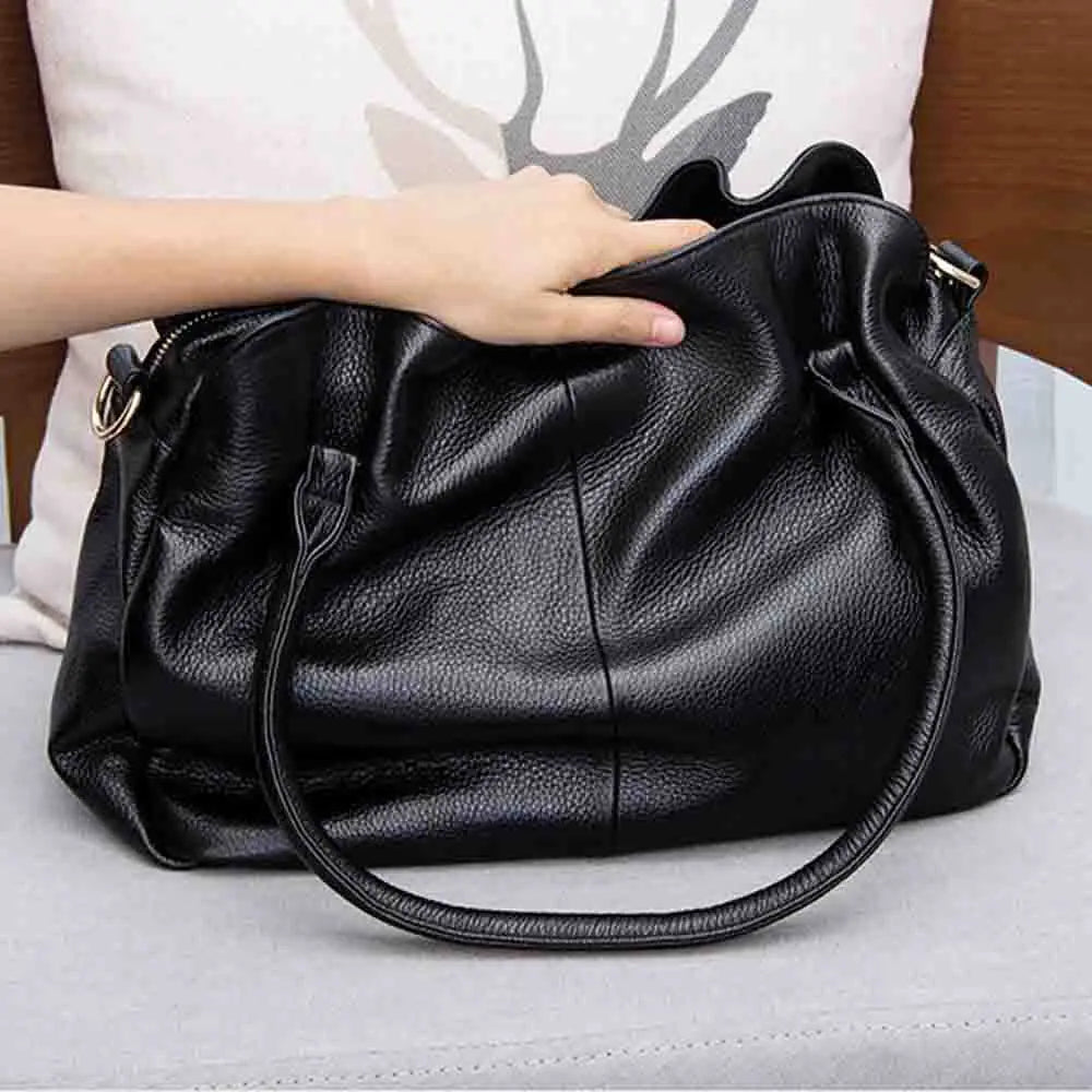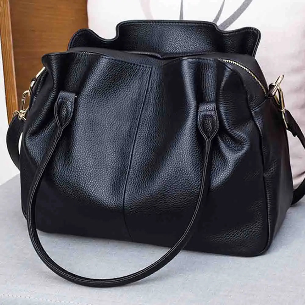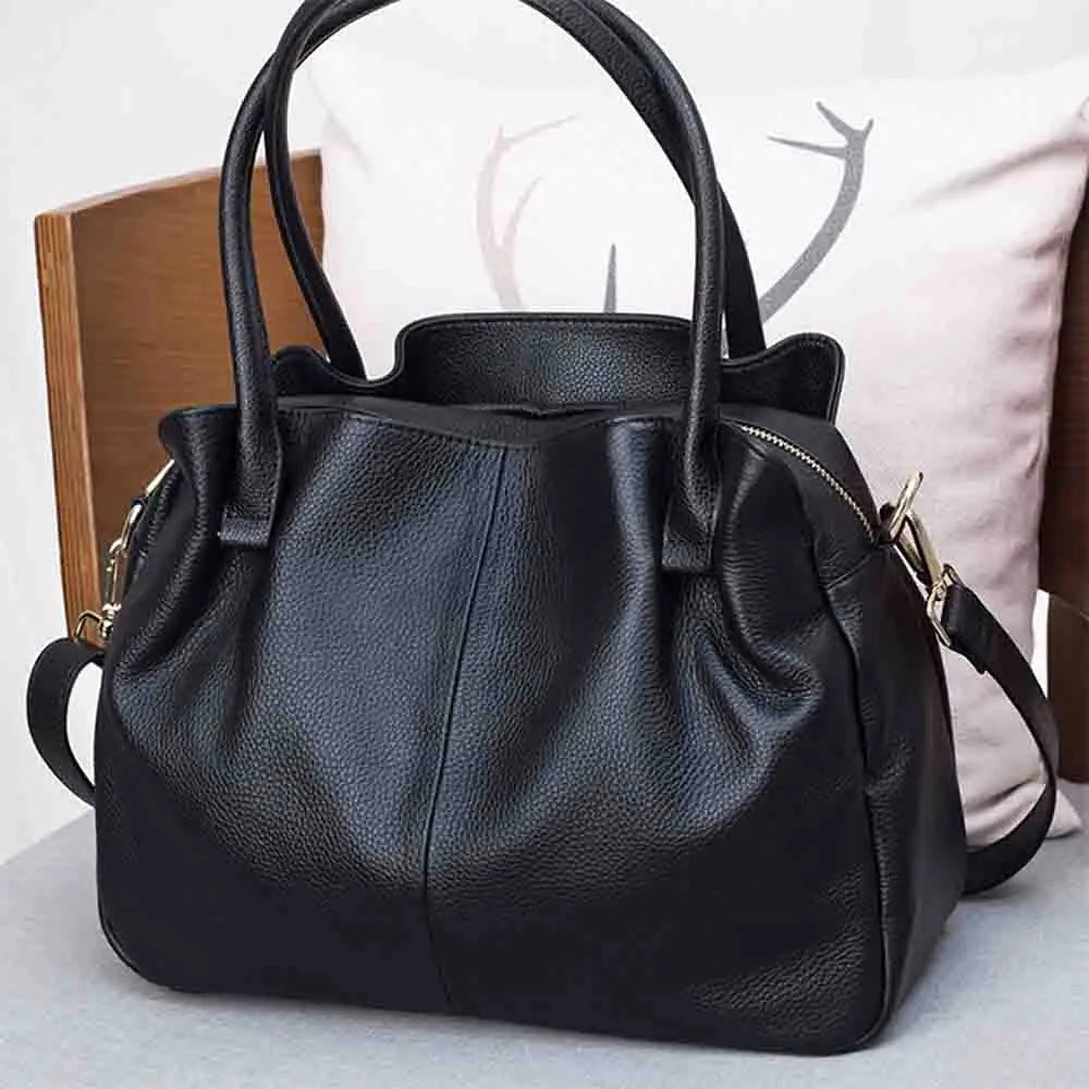 Soft Cow Leather Handbag for Women Large 3 Interlayer Elegant Ladies Handbag