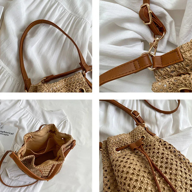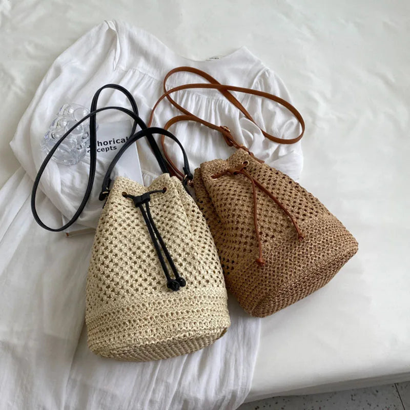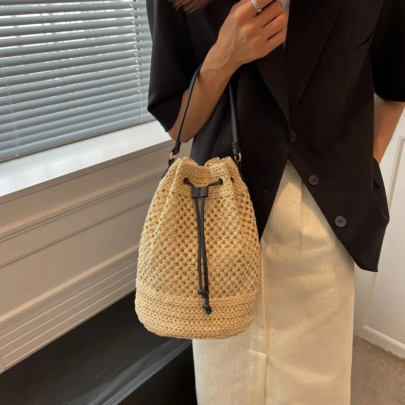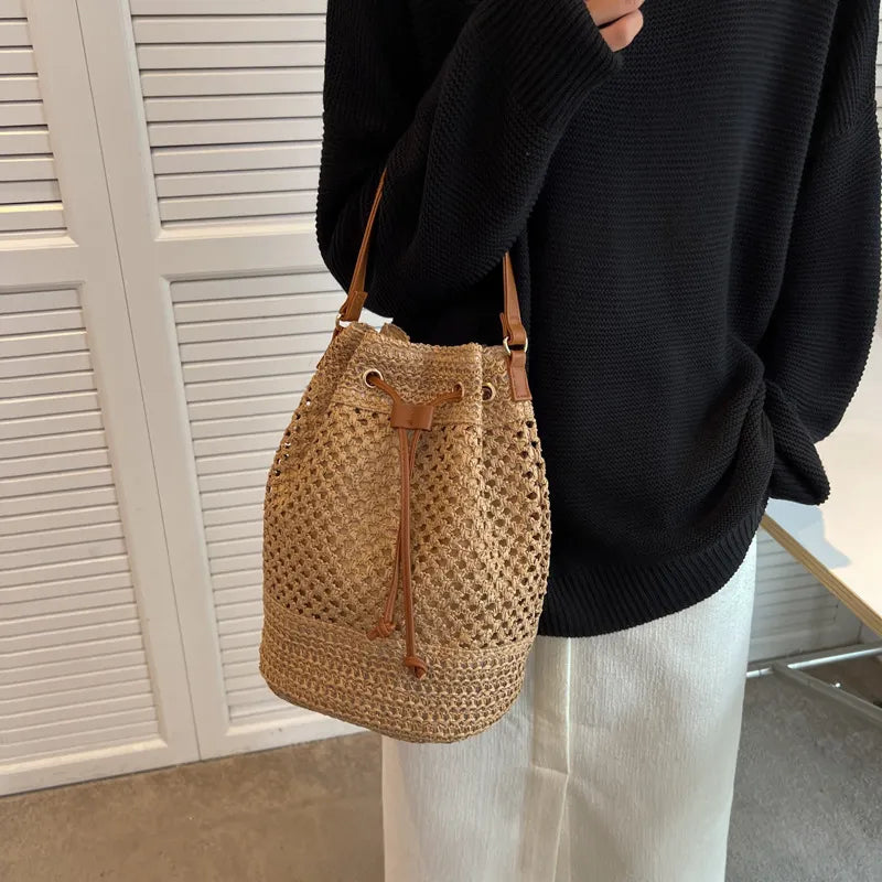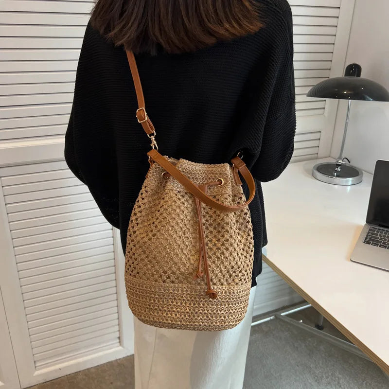 Soft Straw Woven Beach Bag Women's New Fashion Portable Bucket Single Shoulder Crossbody Bag