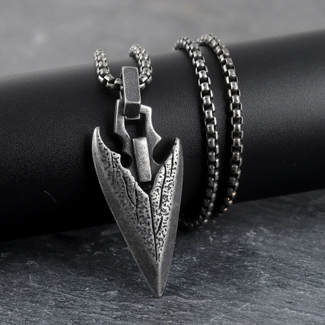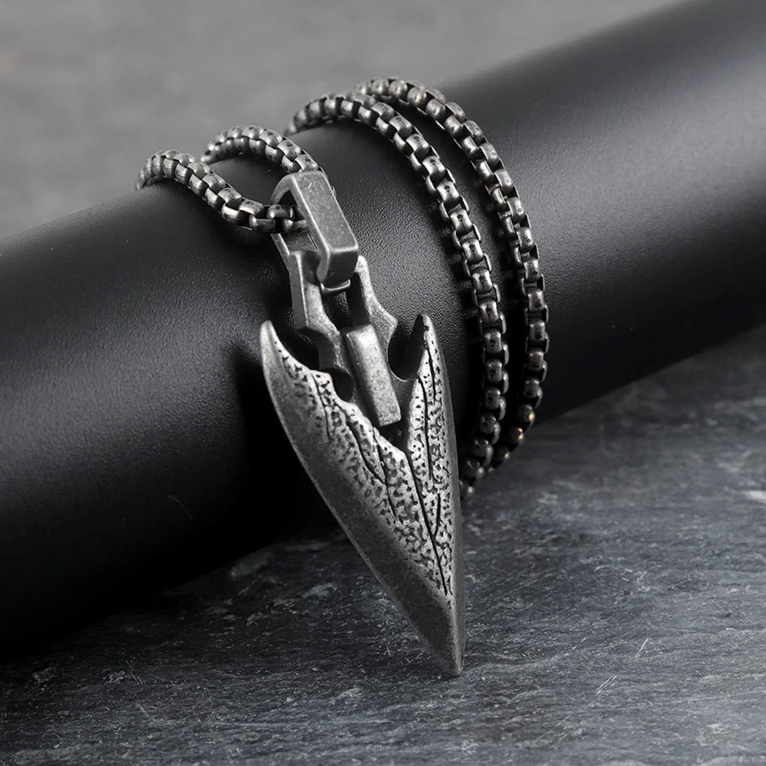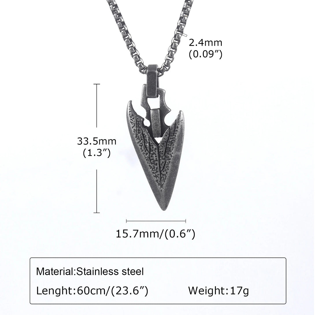 Spear Point Arrowhead Necklaces for Men, Cool Punk Stainless Steel Arrow Pendant Collar with Box Chain Gift Jewelry