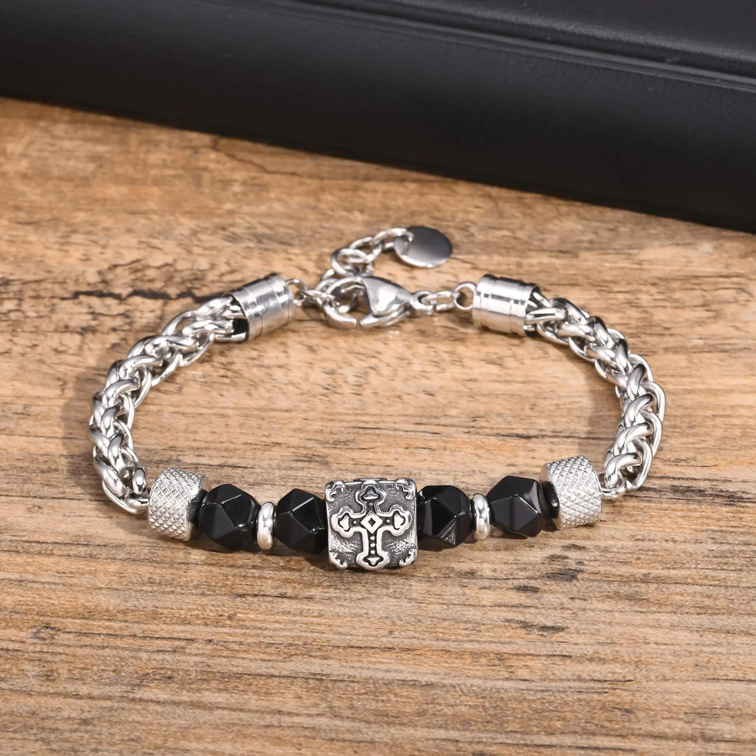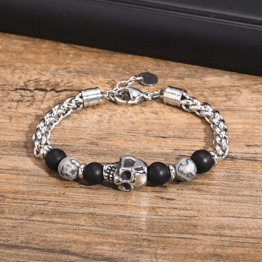 Stainless Steel Bracelets for Men Boys,Gothic Cross Skull Wolf Head Bracelets