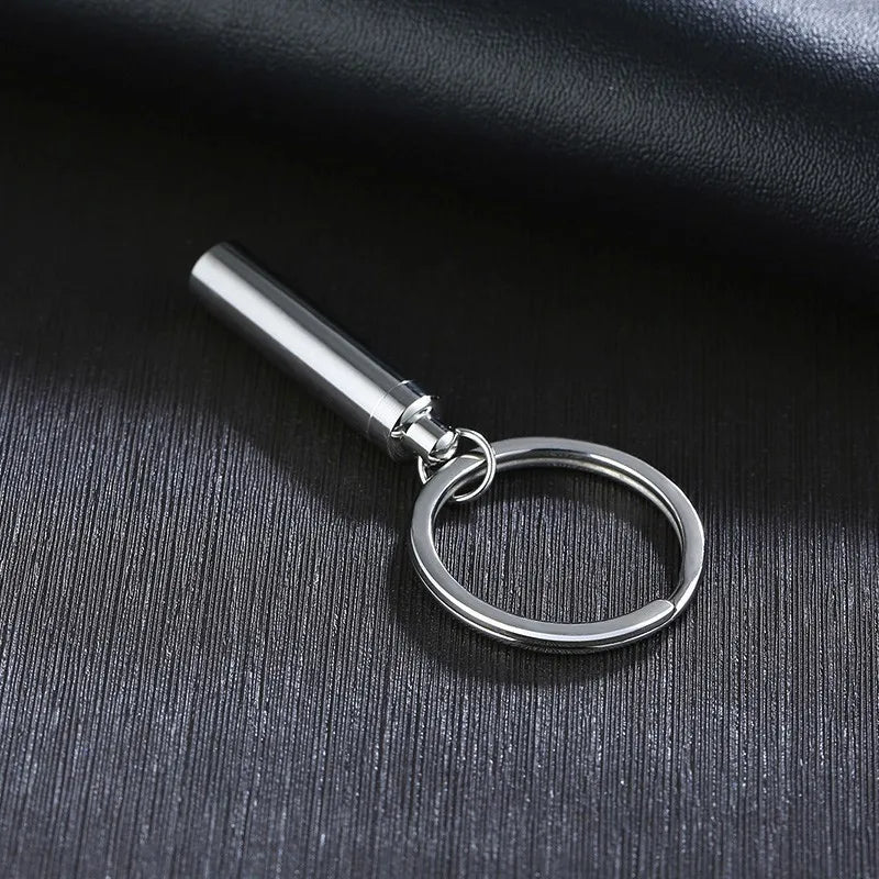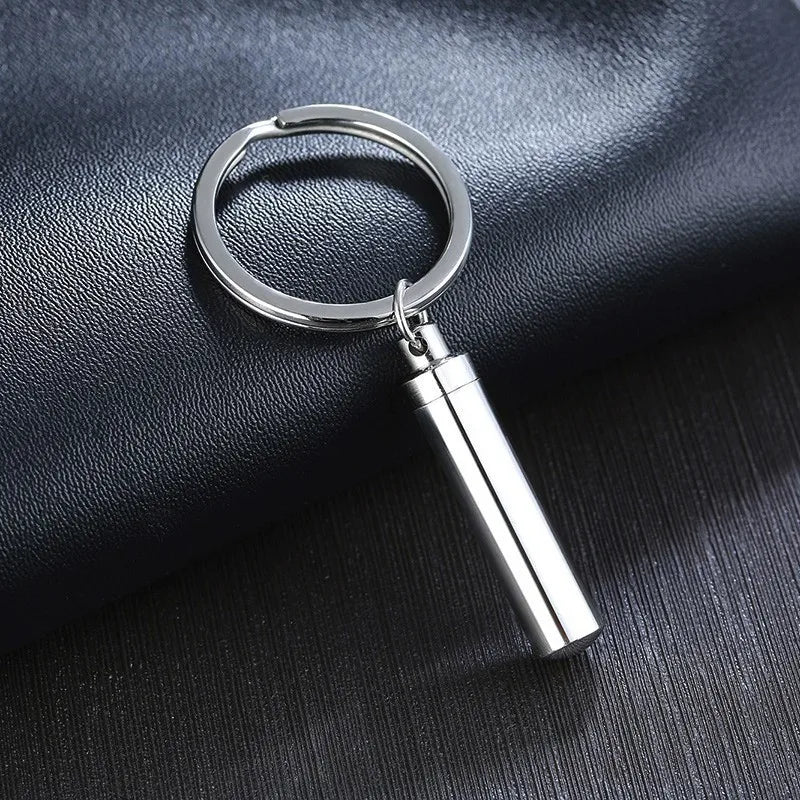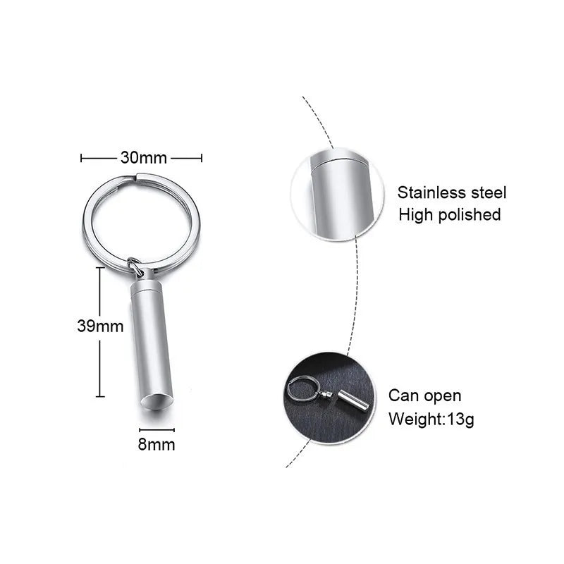 Stainless Steel Cylinder Urn Keychain for Men Women Bottle Hanging Pills Cremation Memorial Urn Jewelry for Ashes Time Capsule