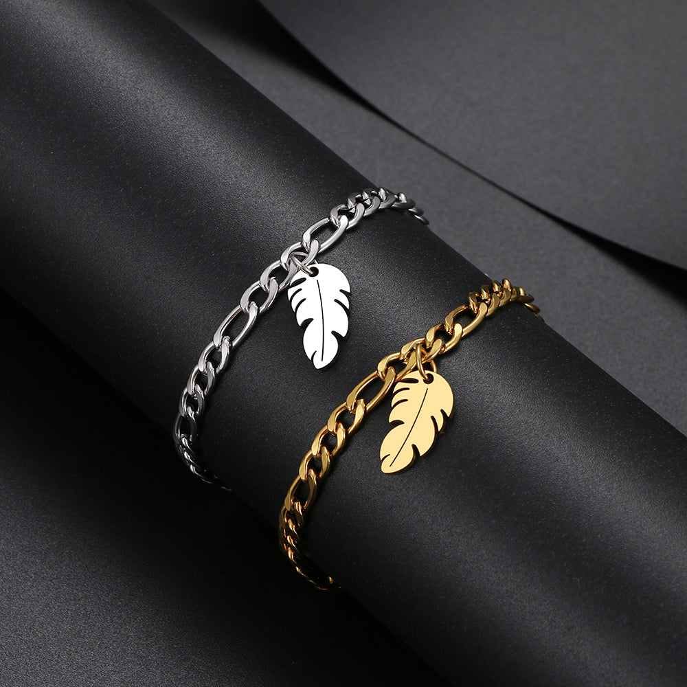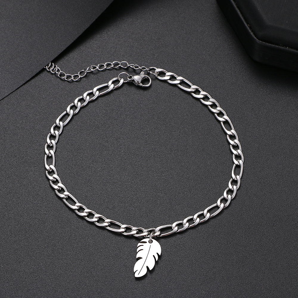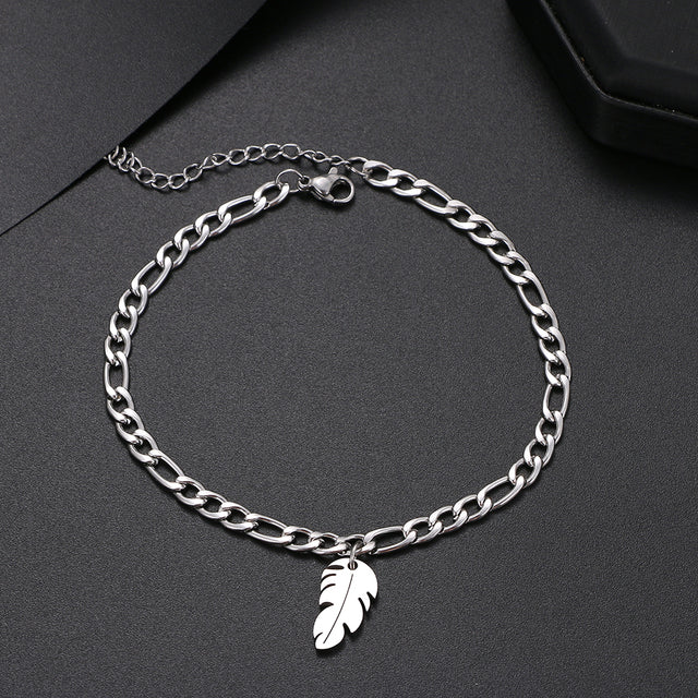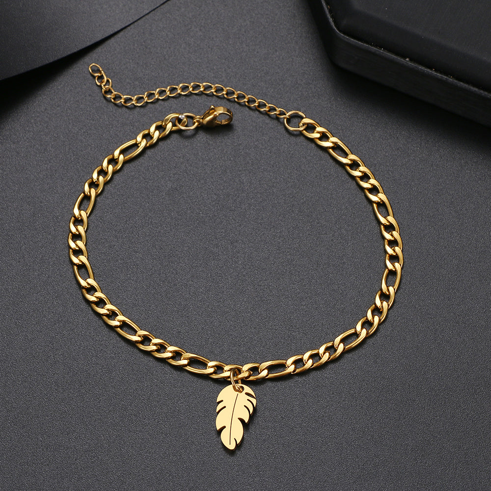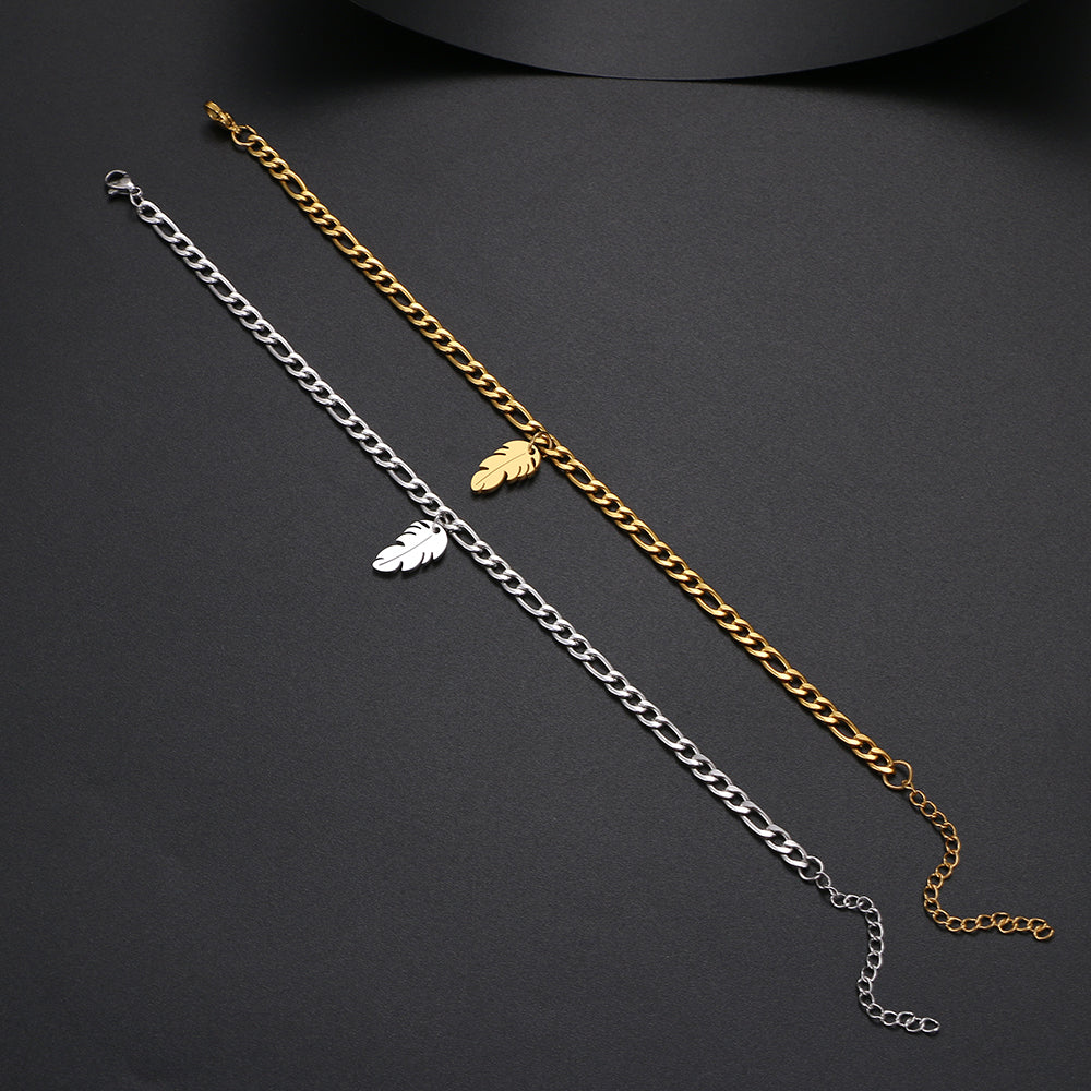 Anklets- Stainless Steel Feather Anklets Fashion Cuban Chain Accessory Summer Beach Anklet For Women Foot Jewelry Golden Color Feet Gifts