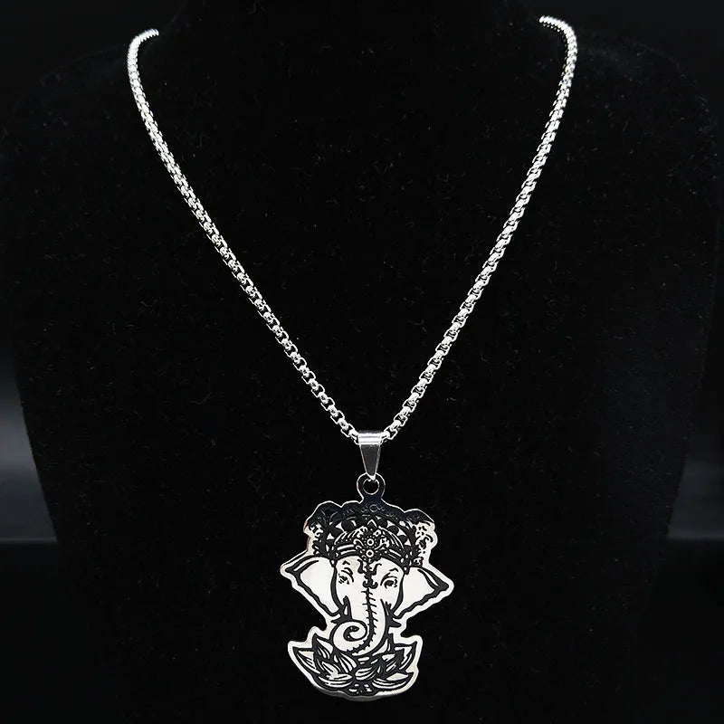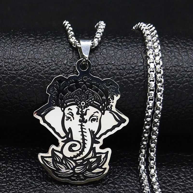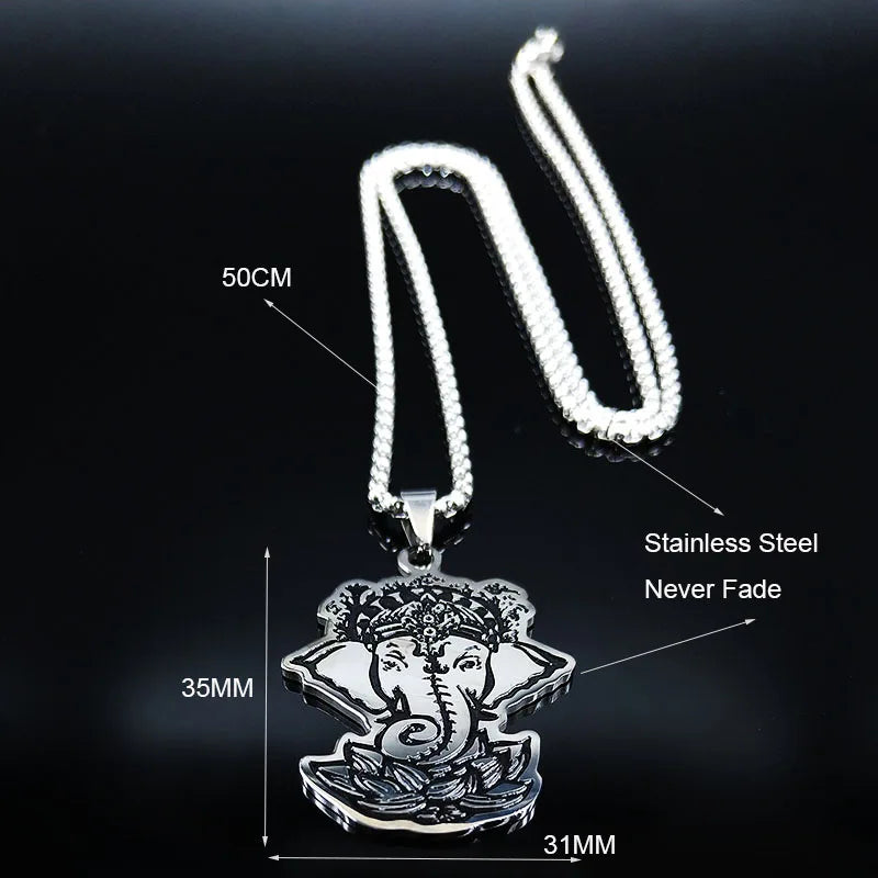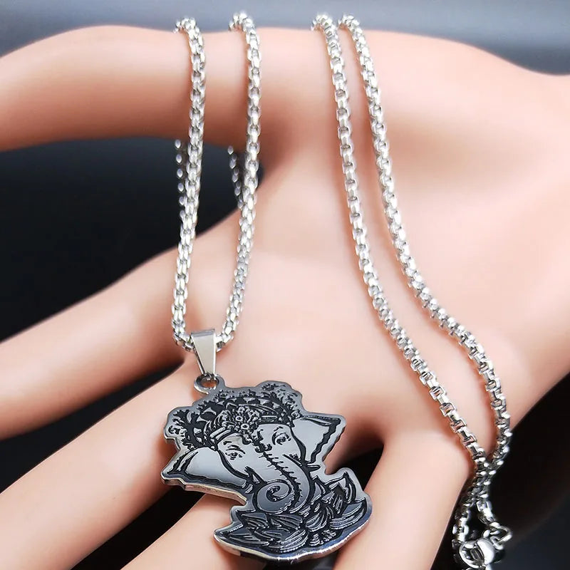 Stainless Steel Ganesha God of Fortune Pendant Hindu Yoga Elephant Necklace Buddha Meditation Spiritual Necklace Jewelry collares