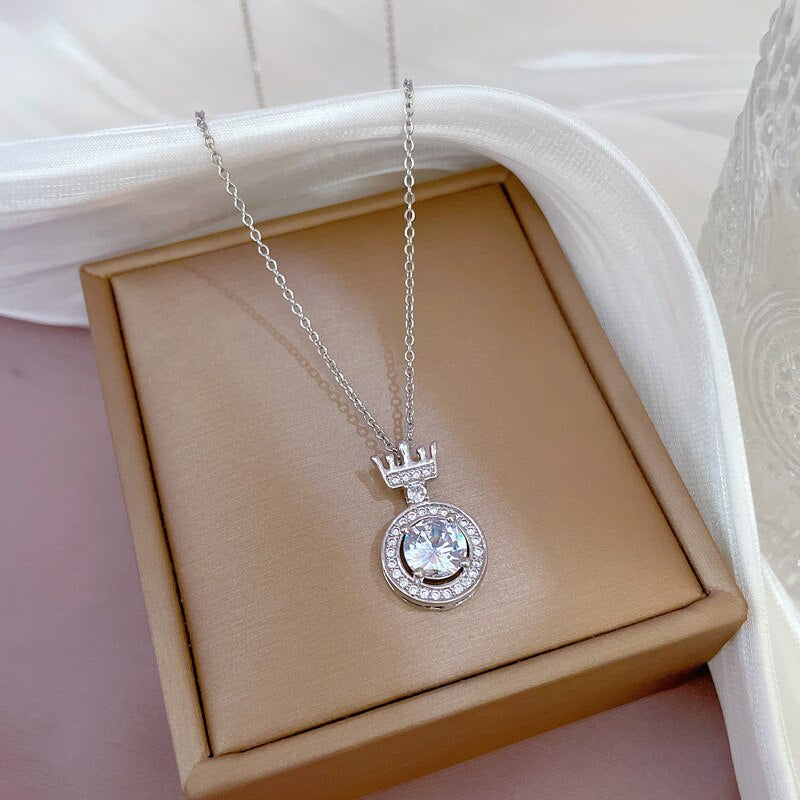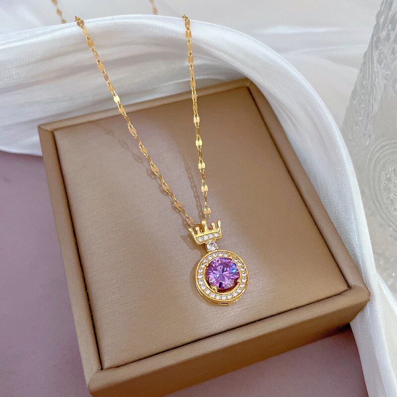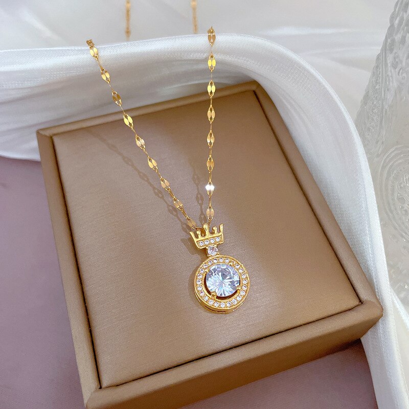585 Gold Jewelry-Stainless Steel Necklaces Classic Crown CZ Pendant Choker Chain Fashion Necklace For Women Zirconia Jewelry Party Girls