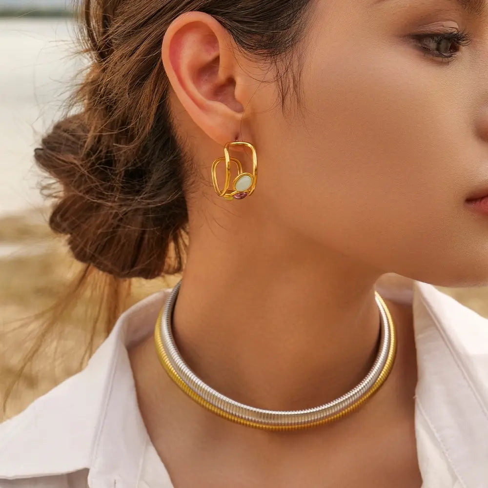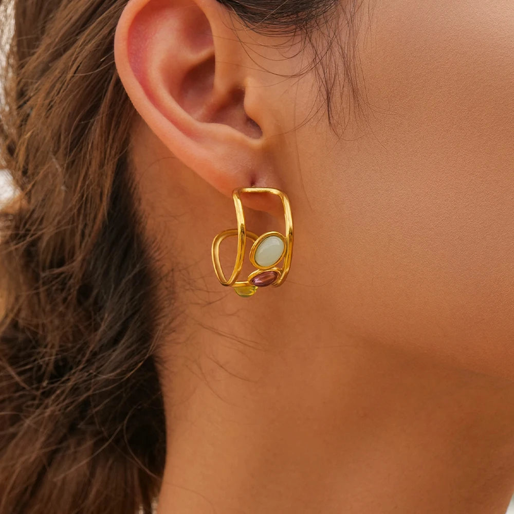 Stainless Steel Niche Design Light Luxury Glass Earrings Waterproof Hypoallergenic Jewelry For Women Party Gift