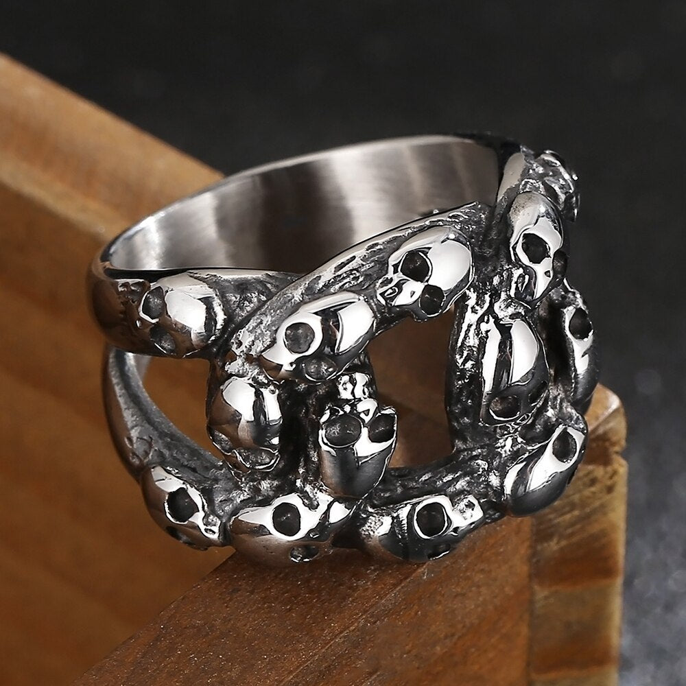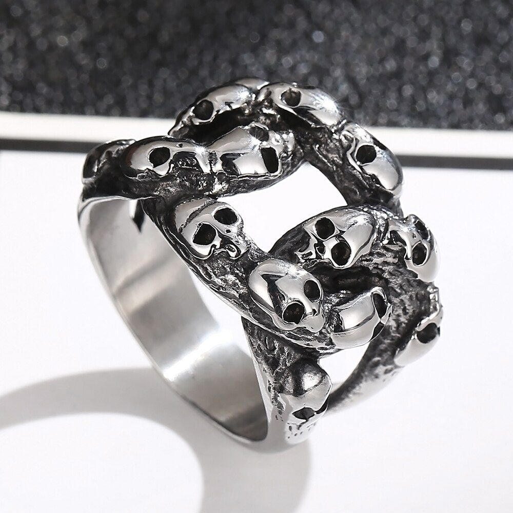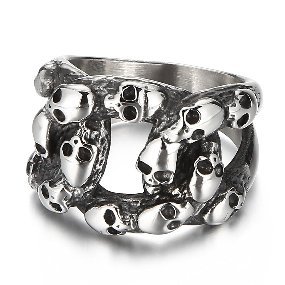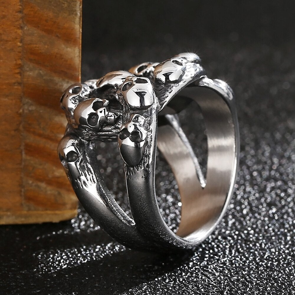 Steampunk Ghost Head Skull Rings for Men Stainless Steel Vintage Gothic Punk Metal Rock Biker Jewelry Accessories