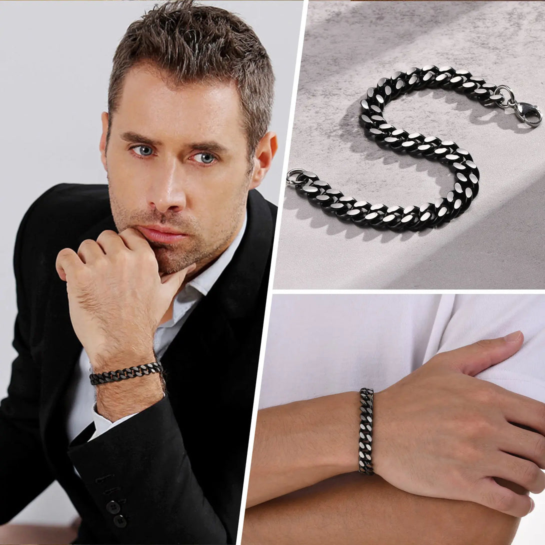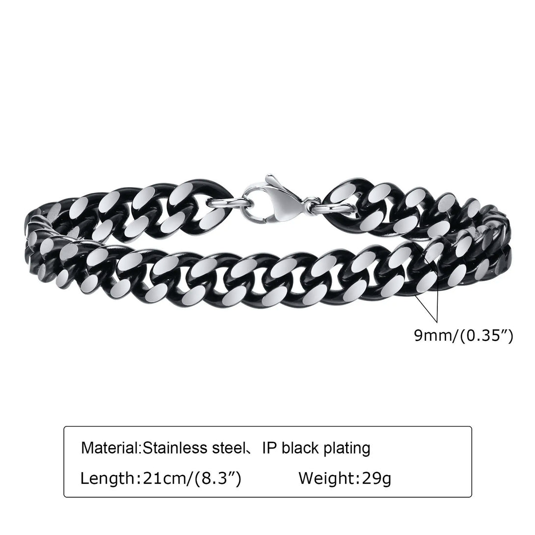 Stylish 9mm Cuban Chain Bracelets for Men, Waterproof Stainless Steel Miami Curb Link Chain Wristband, Casual Gifts for Him