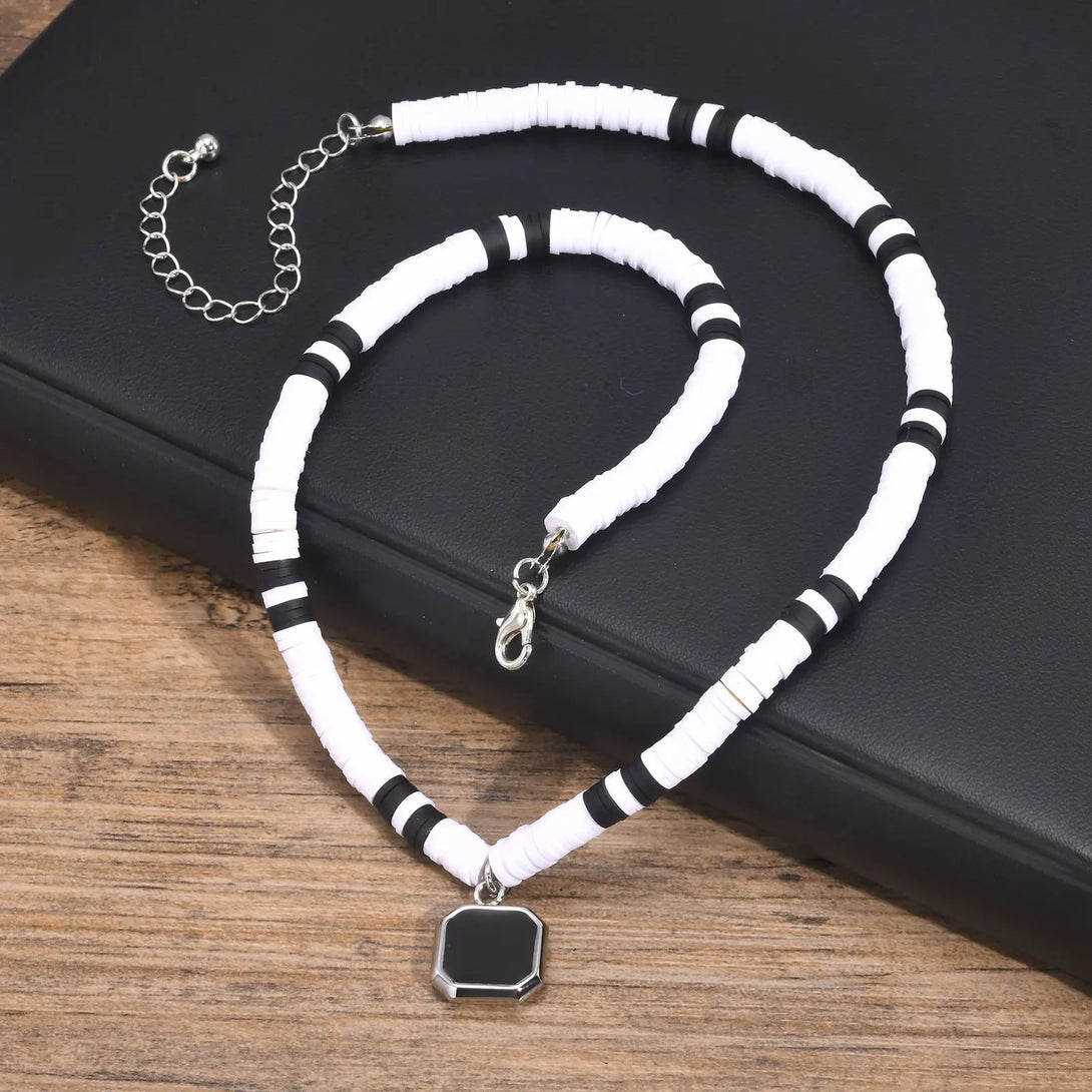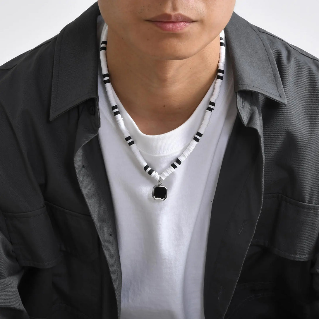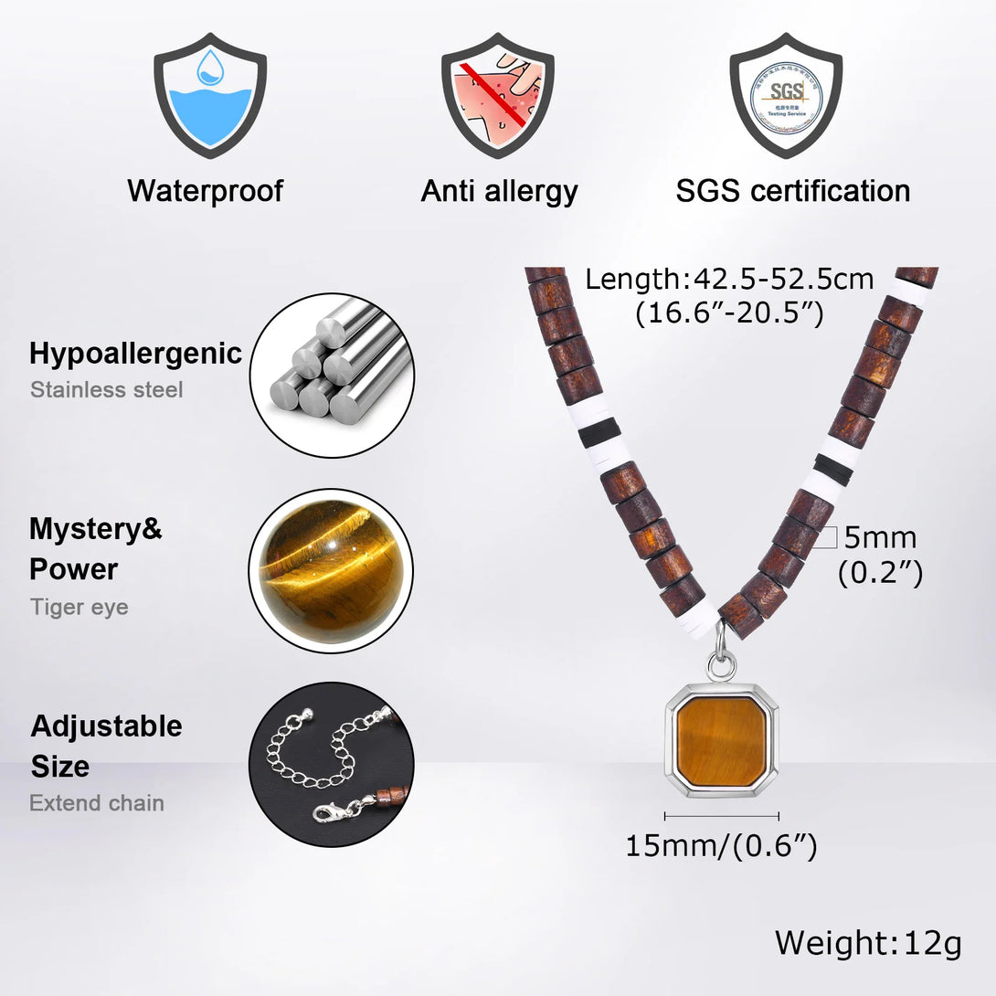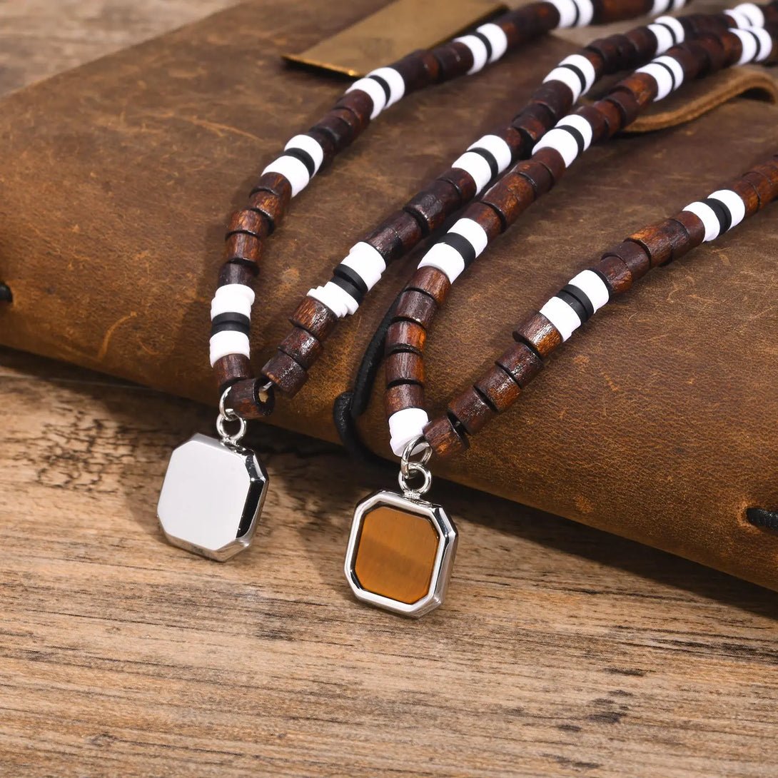 Stylish Geometric Pendant Necklaces for Men Boys,Waterproof Two Tone Wooden Chain,Beach Surfing Choker Jewelry