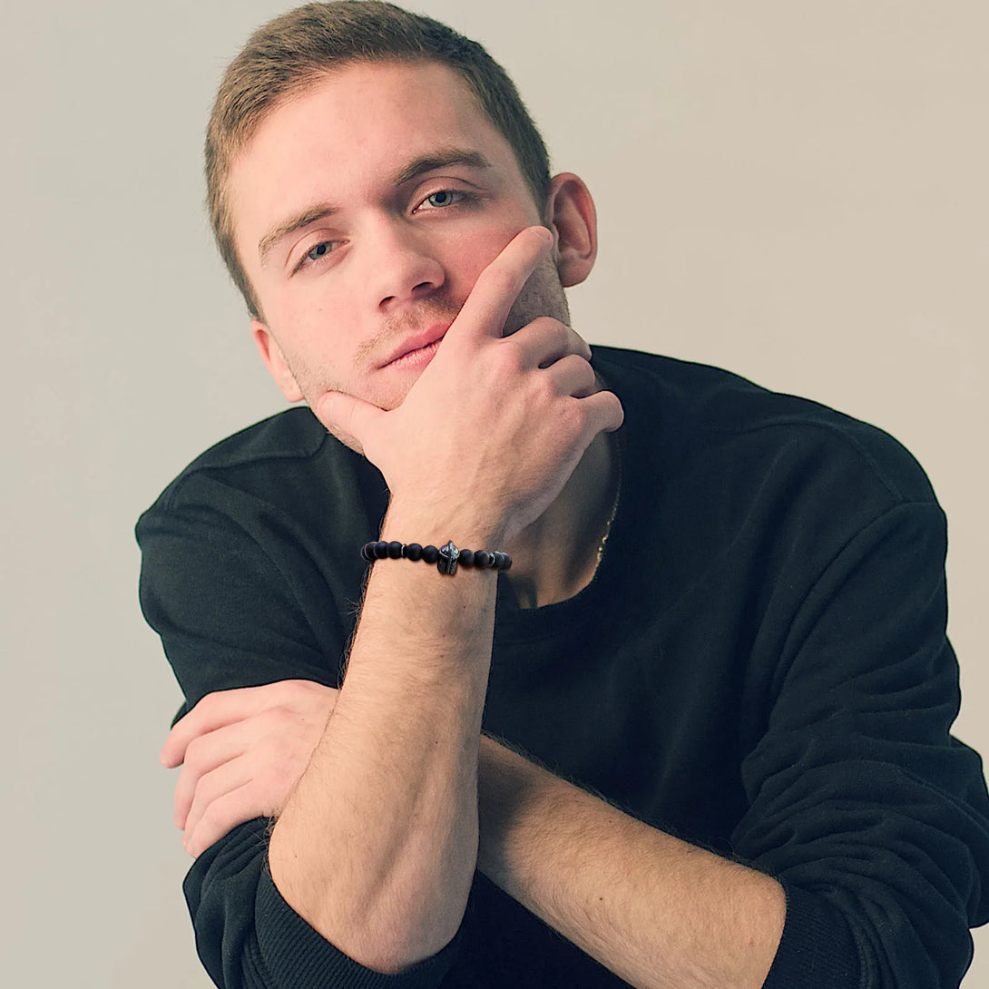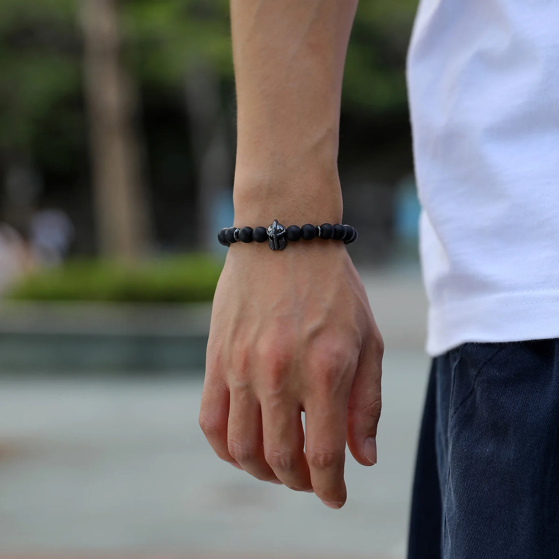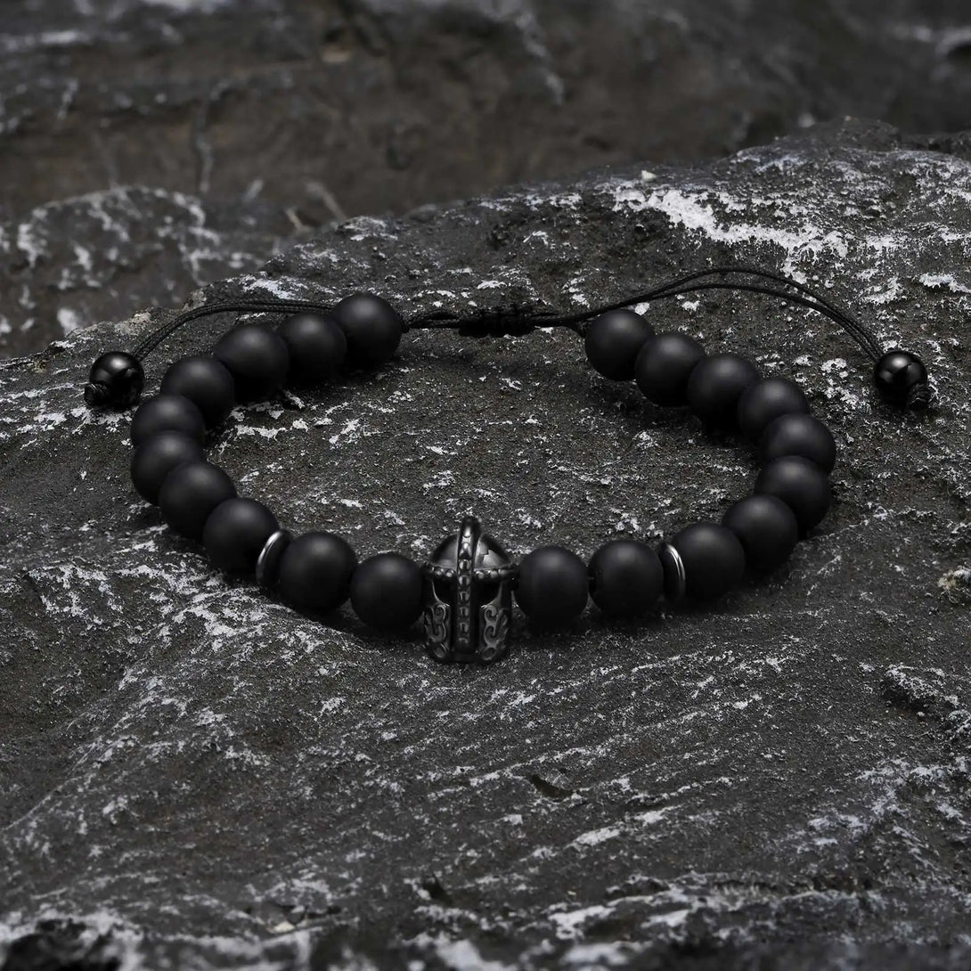 Stylish Helmet Charm Bracelets for Men Boys,Black Natural Stones Beaded Bracelets,Adjustable Jewelry Gift