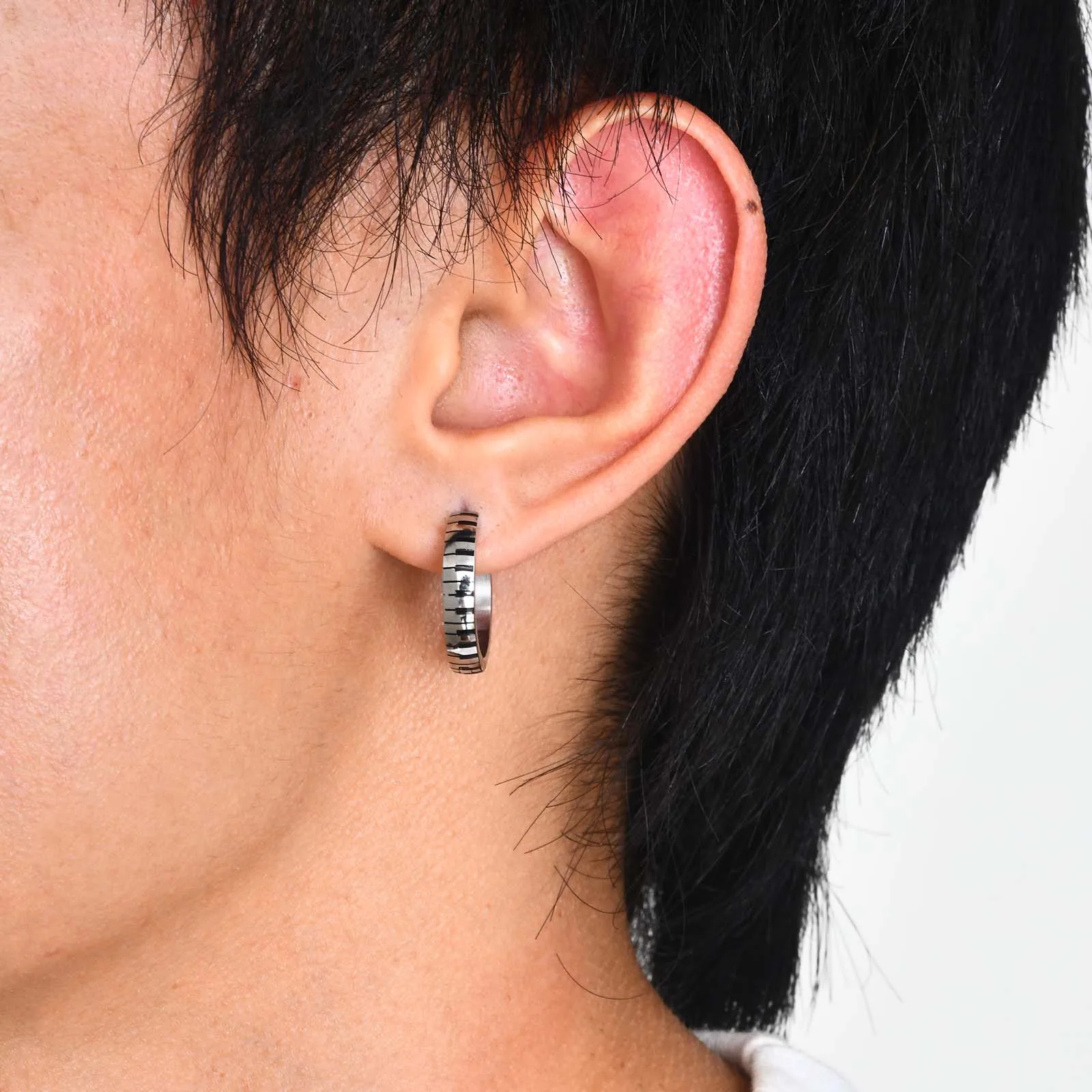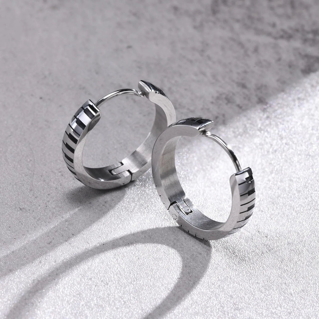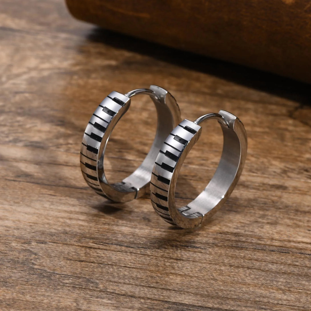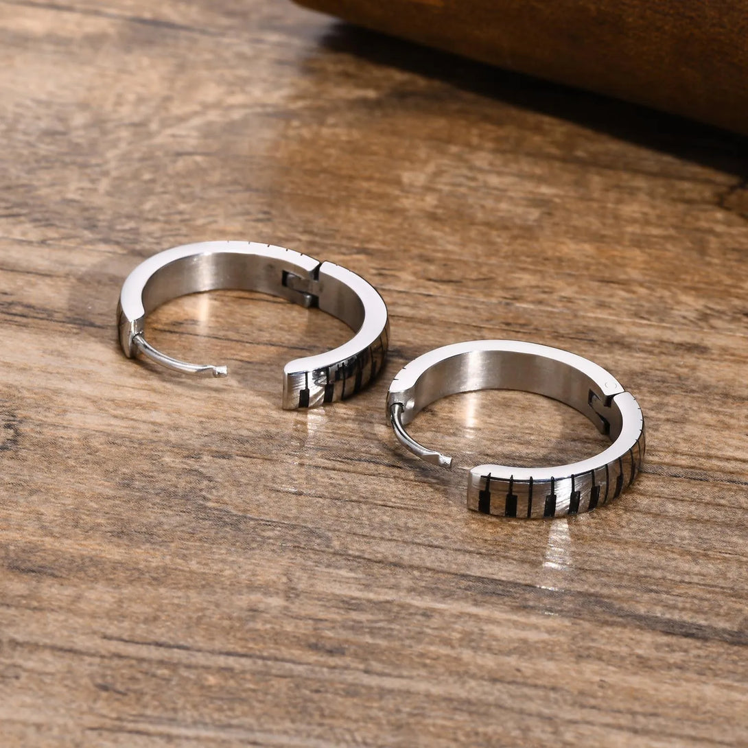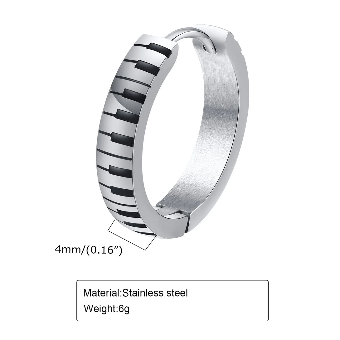 Stylish Piano Hoop Huggie Earrings for Men Boys, Waterproof Stainless Steel Ear Gifts for Him Jewelry