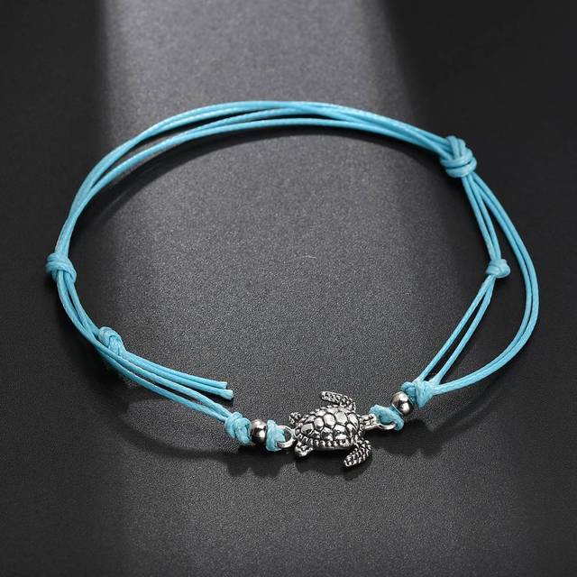 Anklets- Summer Beach Turtle Shaped Charm Rope String Anklets For Women Ankle Bracelet Woman Sandals On the Leg Chain Foot Jewelry