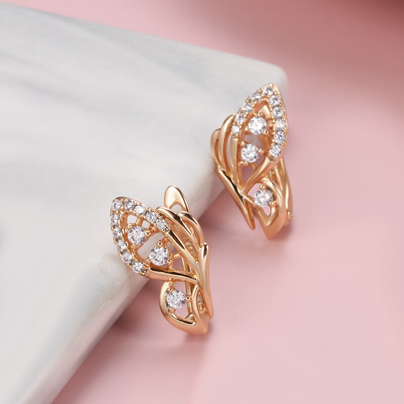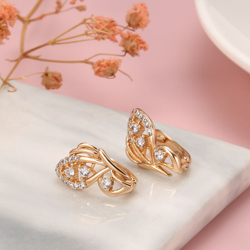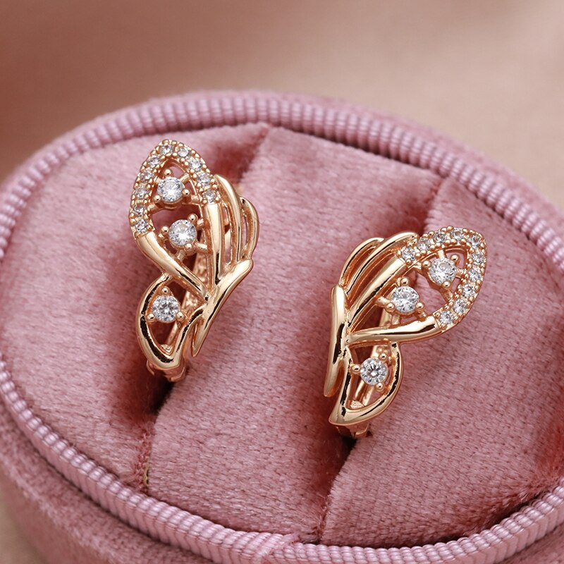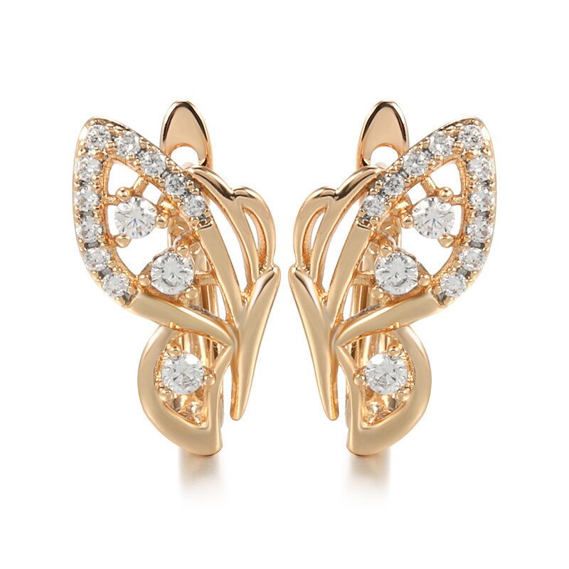 Summer New Bling Earrings 585 Rose Gold Butterfly Zircon Earrings for Women