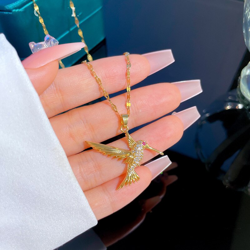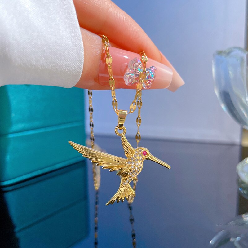 585 Gold Jewelry-Stainless Steel Sweet Elegant Flying Bird Woodpecker Zircon Pendant Necklaces For Women Korean Fashion Ladies Sexy Jewelry