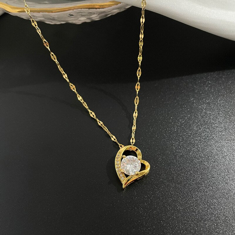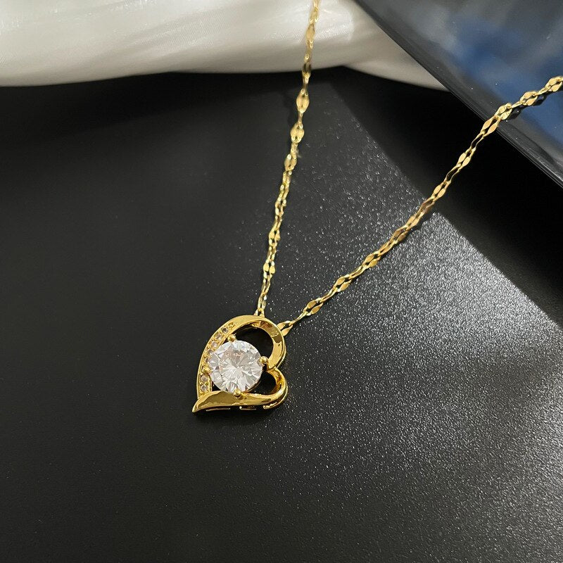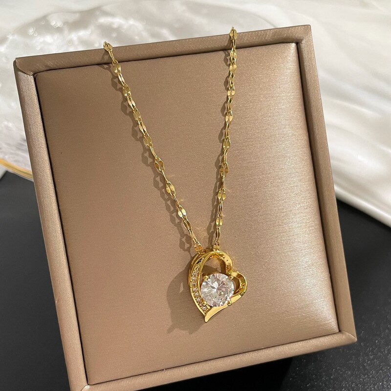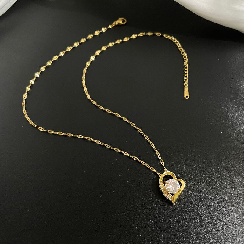 585 Gold Jewelry-316L Stainless Steel Sweet Heart Zircon Crystal Pendant Clavicle Chain Necklace For Women Korean Fashion Wedding Jewelry