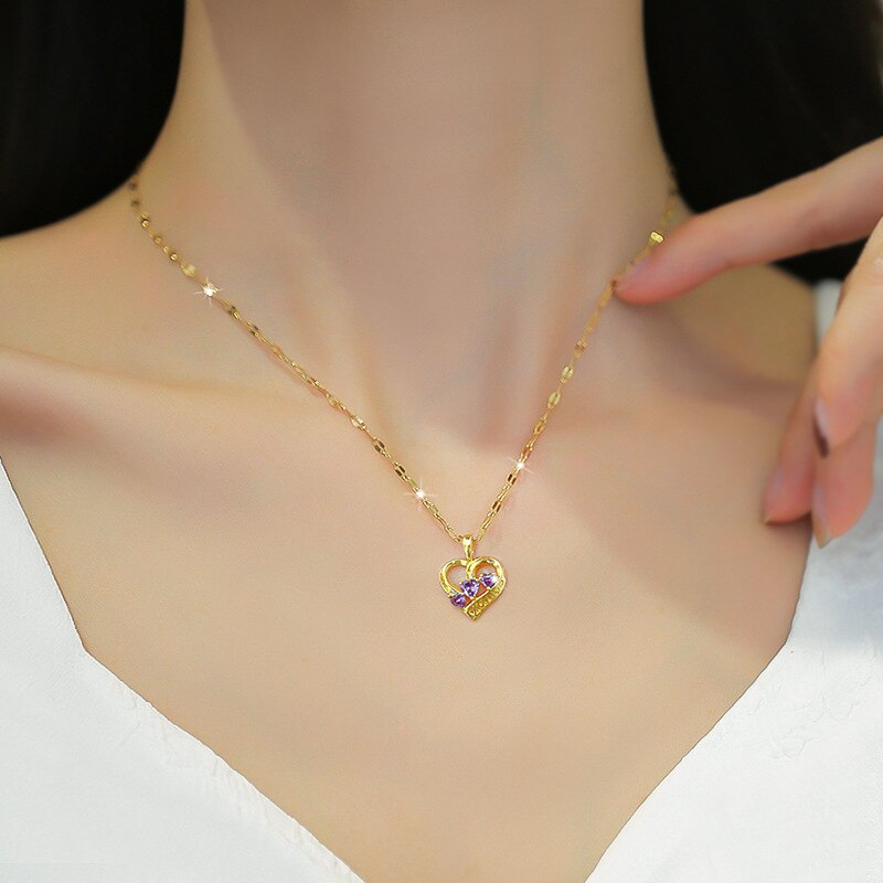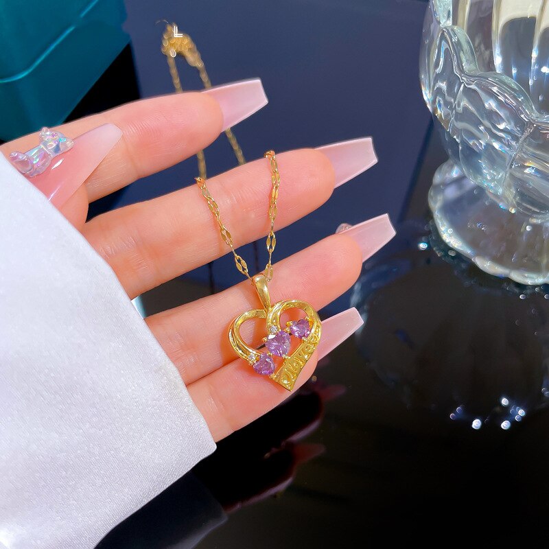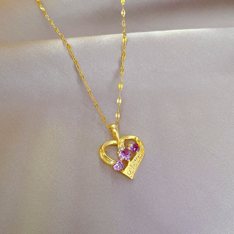 585 Gold Jewelry-Stainless Steel Temperament Romantic Love Heart Pendant Short Necklaces for Women Goth Vintage Charm Choker Necklace